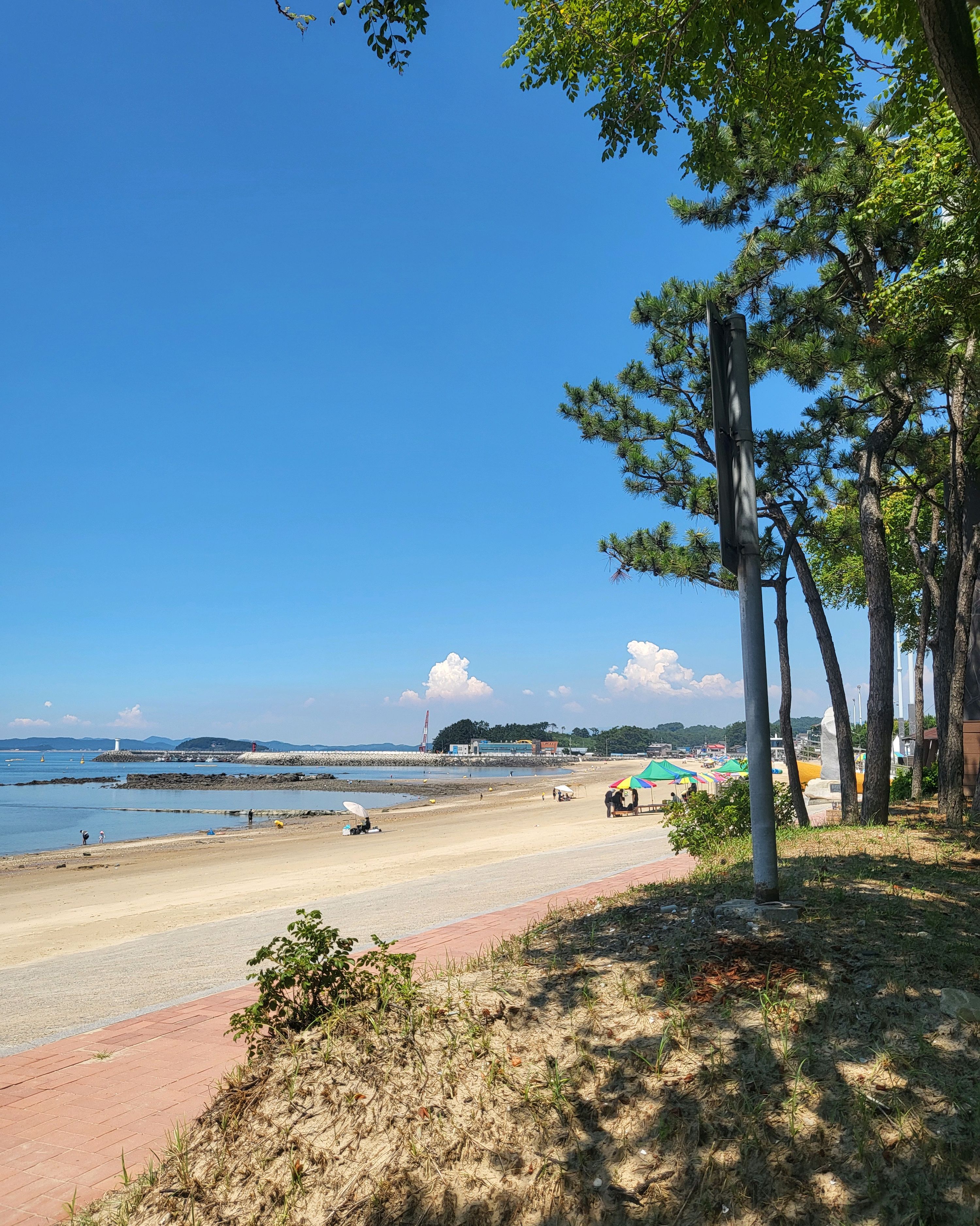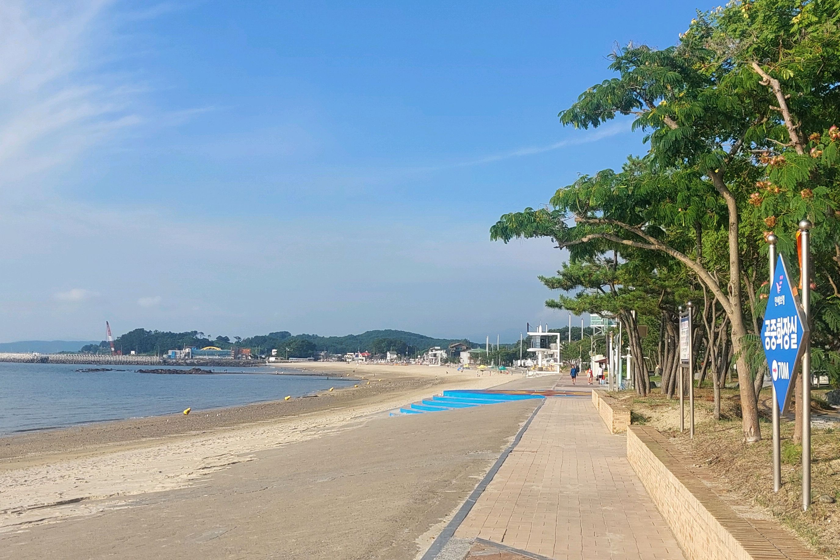 해변과 숙박업체, 카페, 음식점이 엄청 가까워서 접근성이 좋고 대하-전어 대잔치 축제도 하고 있음.
