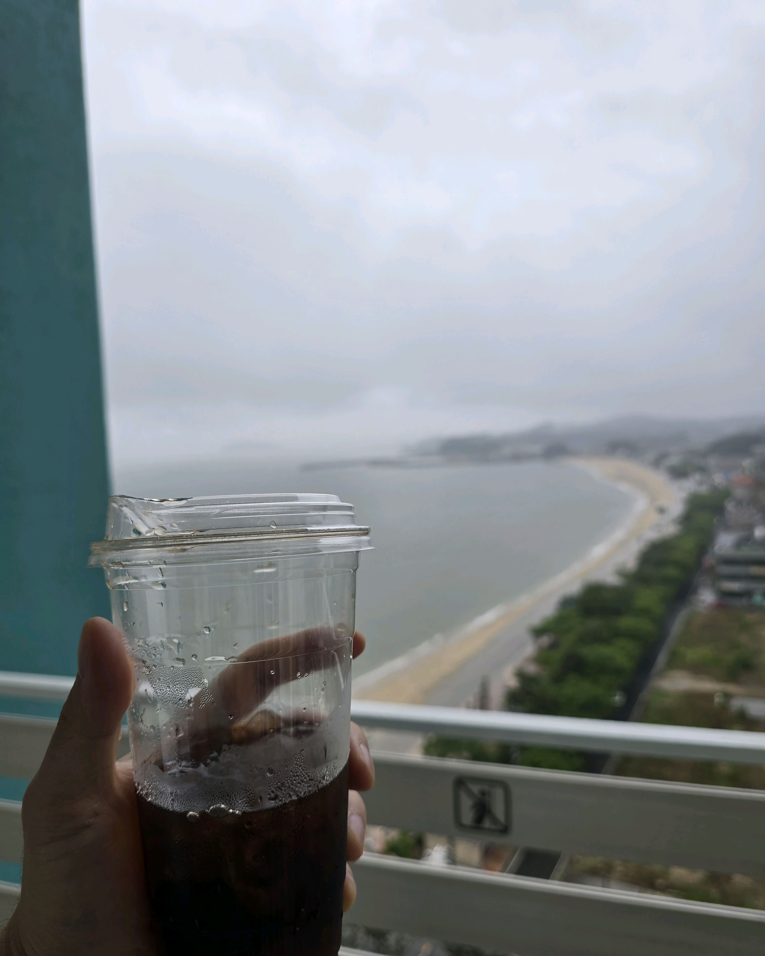 비체팰리스 편의점에서 사온 커피 한잔과 함께 무창포해수욕장 뷰를 만끽하다.