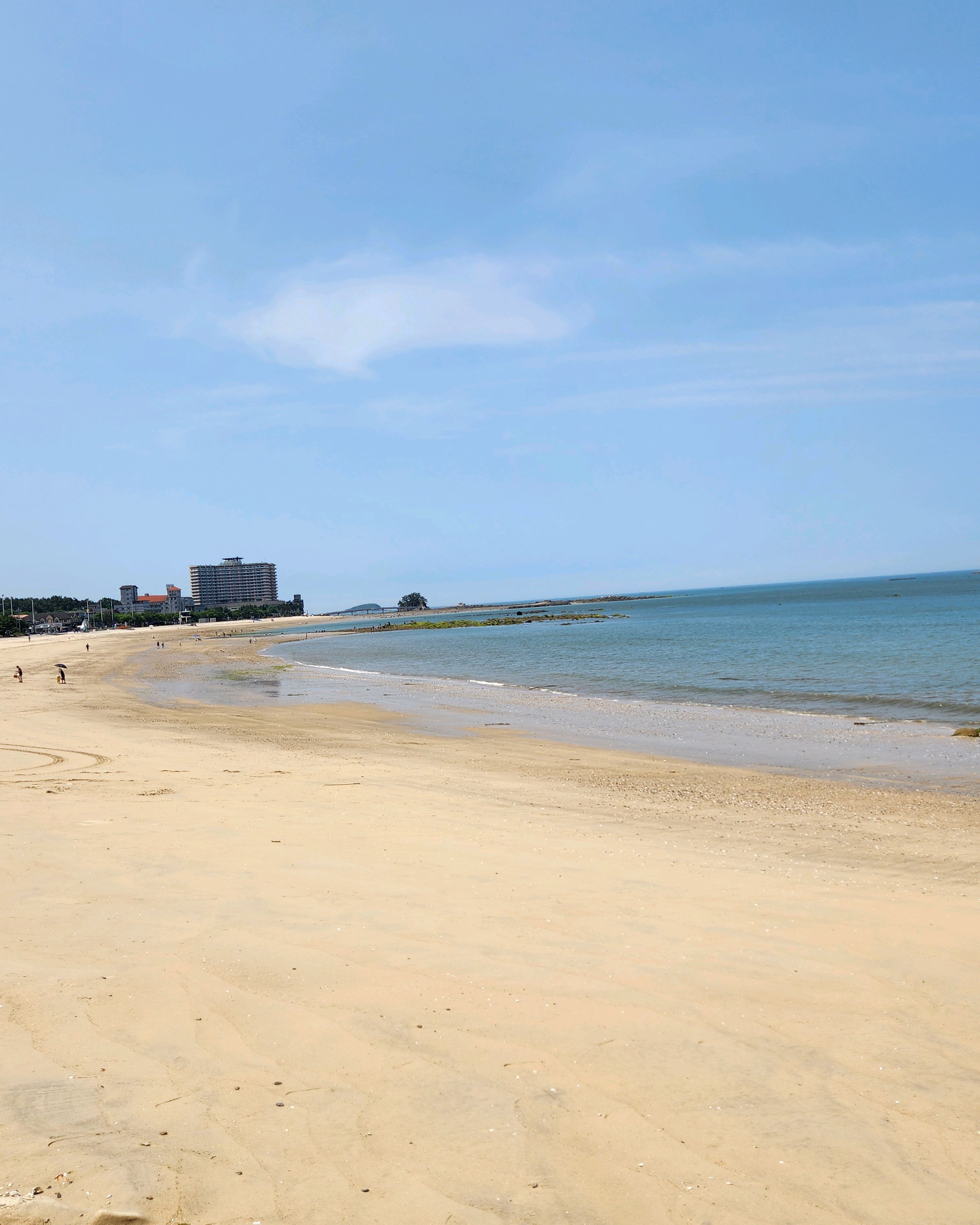 해변에 텐트치고 있는 분들도 있었고 물도 얕아서 아이들 놀기에도 좋다.