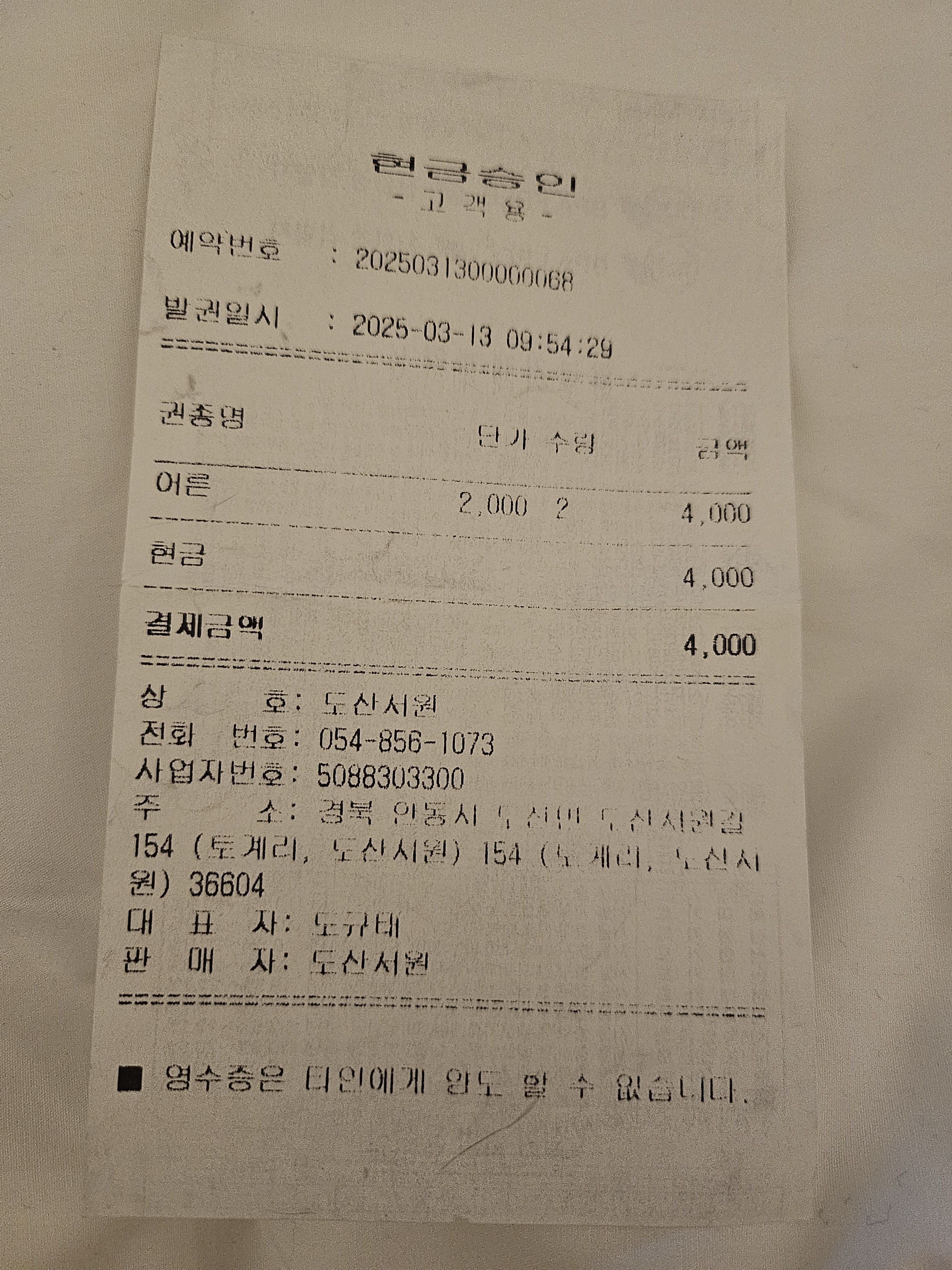 도산서원 입장료 2천원