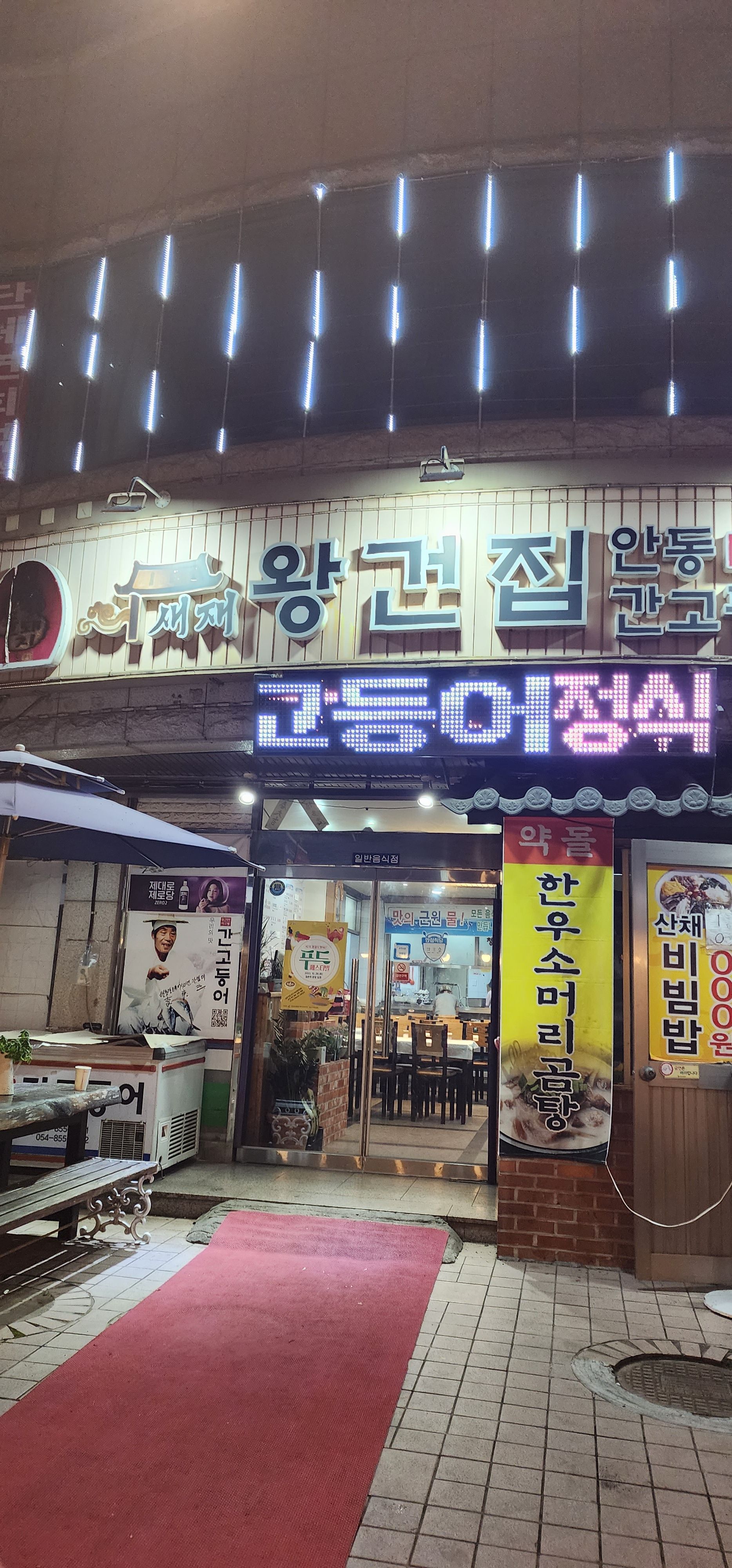 | 대표 메뉴 | 왕건정식 | | 기타 메뉴 | 약돌양념석쇠정식, 안동 간고등어정식, 산채비빔밥, 송이전골 | | 금연/흡연 | 모두 금연석 | | 영업시간 | 08:00 ~ 21:00 | | 쉬는날 | 연중무휴 | | 신용카드 | 가능 | | 예약 안내 | 전화 예약 문의 (054-571-8857) |