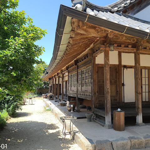 초가집과 2층 한옥이 어우러진 독특한 가옥 충청남도 청양군 장평면에 자리한 고택으로, 충남 민속자료 제18호로 지정되었다. 1,200평에 이르는 널찍한 대지에 ‘안채’, ‘사랑채’, ‘별채’, ‘행랑채’ 등 6동의 건물이 들어서 있다. 초가집인 ‘사랑채’는 현 주인장인 윤남석(尹男石)의 고조부가 약 200년 전에 지었고, ‘안채’와 ‘별채’ 등은 1937년에 윤남석의 부친이 지었다. 그 중 '별채'는 2층으로 되어 있는데, 우리나라 한옥의 전통적인 건축 양식과 일본의 건축 양식이 절충된 독특한 형태의 가옥으로 평가받고 있다. 가옥 옆에는 대대로 내려오는 가풍 음식인 건화빵을 만드는 제빵 건물이 있다. 또한 옛 시계 박물관으로 꾸며진 행랑채에는 주인장의 할아버지 때부터 꾸준히 모아온 1790년대부터 1950년대까지의 골동 시계 760점이 전시되어 있다. 진귀한 시계가 많아 둘러보는 재미가 있다. LP판 선율 흐르는 대청마루와 피로가 말끔히 가시는 황토방 가옥의 관리 및 보존을 위해 2012년부터 '사랑채'와 '안채', '별채'를 숙박 공간으로 열었다. '사랑채'는 정면 5칸, 측면 3칸 규모의 초가집이다. 큰 방 2개와 작은 방 2개로 구성되어 있고, 내부와 외부에 각각 대청마루가 있다. 벽은 황토로 마감하고, 한지 바른 바닥에 이중 구들을 깔아 잠시만 누워 있어도 피로가 풀린다고 한다. '안채'는 정면 9칸, 측면 3칸 규모의 기와집이다. 큰 방 2개와 작은 방 2개, 대청마루로 구성되어 있고, 안채 일부에는 주인장이 기거한다. 안채의 대청마루에는 LP판 5천여 장과 프리 엠프, 파워 엠프, 턴테이블, 테크닉스 스피커 등 음악 장비가 잘 비치되어 있어 아름다운 선율 즐길 수 있다. 별채는 정면 5칸, 측면 3칸 규모에 4면 모두 반 칸씩 툇마루를 낸 2층 건물이다. 1층은 숙박 공간, 2층은 화랑이고, 큰 방 2개와 작은 방 2개로 구성되어 있다. 안채와 별채는 각각 외부에 화장실이 있고, 안채의 주방을 공용으로 사용할 수 있다. 방마다 고가구와 자기가 멋스럽게 장식되어 있다. 청양 밀과 백련, 표고버섯으로 만든 자연 발효 건화빵 주인장은 손님에게 간식으로 건강에 좋은 건화빵을 제공한다. 건화빵은 청양의 거친 밀과 맑고 시원한 바람을 맞으며 자란 백련, 표고버섯을 천연 발효제인 누룩과 엿기름으로 숙성시켜 만든 자연 발효 빵이다. 이 빵은 소화가 잘되고, 위장 건강에 탁월한 효과가 있으며, 연잎과 어우러져 산뜻하면서도 연한 신맛과 자연 고유의 단맛을 낸다. 또한 직접 건화빵을 만들고 맛보는 체험을 상황에 따라 무료로 진행하고 있다. 한 번에 4~8명이 참여할 수 있다. 칠갑산이 차로 5분 거리에 있고, 오토캠핑장으로 잘 알려진 청양 까치네도 차로 10분 거리에 있다. 뿐만 아니라 이곳은 지리적으로 공주, 부여, 칠갑산 세 관광지의 중간에 있기 때문에 오고 가는 길에 여러 지역을 둘러볼 수 있다. |