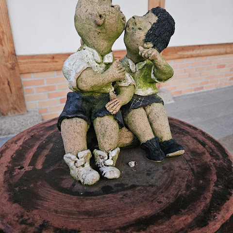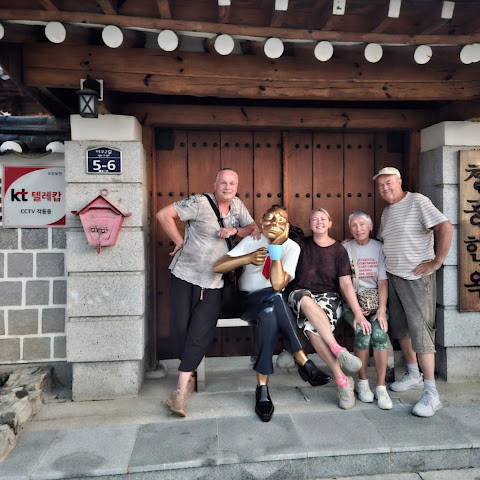 도착하면 대문 앞 커피든 아저씨가반겨주는곳 마당이 너무 에쁘고 예쁜 한옥스테이 입니다 사장님도 친절