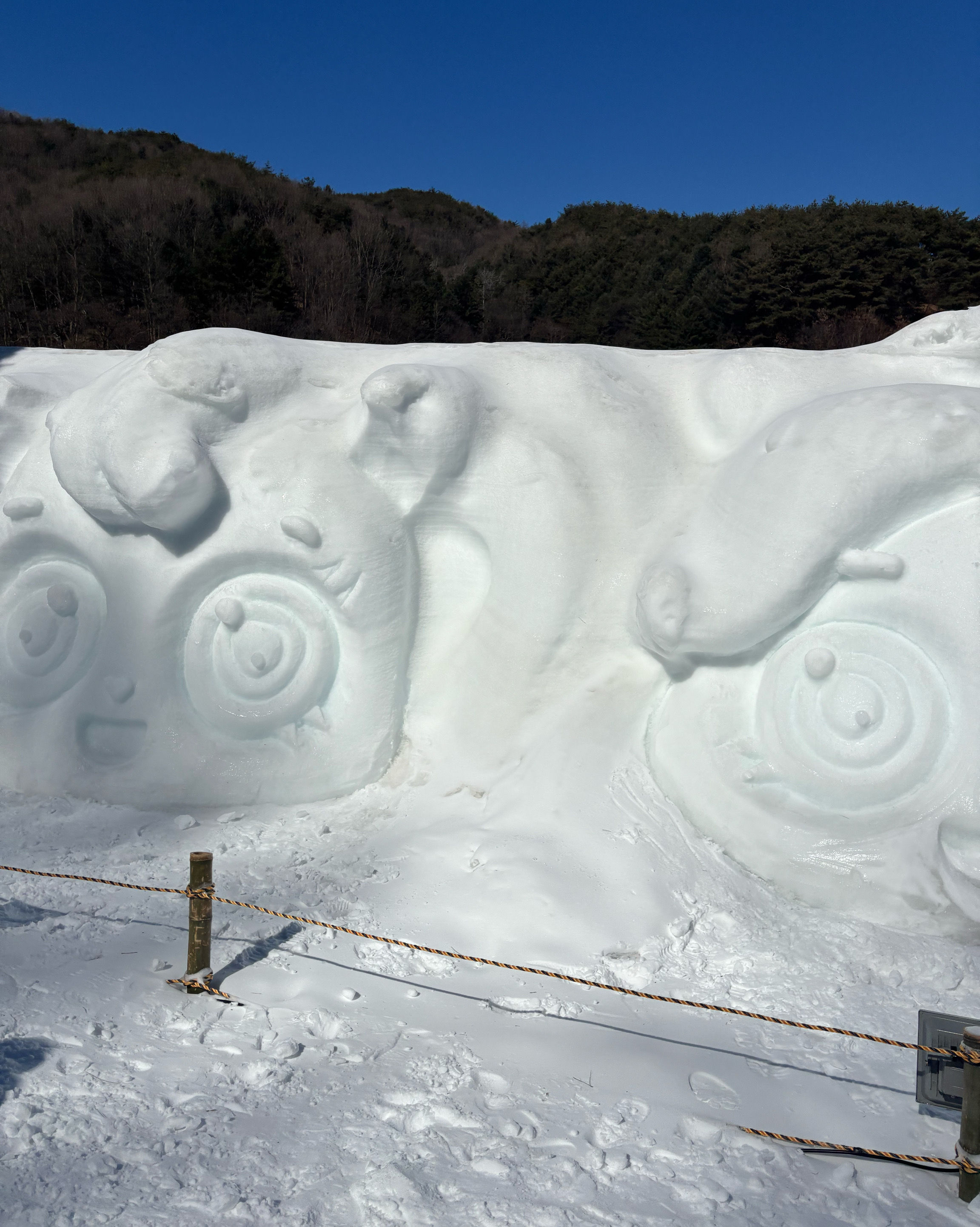 오전에 방문하니까 사람이 많지않아서 눈썰매랑 얼음 봅슬레이 마음대로 탈수있었어요. 축제 막바지라 그런지 얼음이 많이 녹아있어서 그건 약간 아쉽긴했어요. 얼음조각만 보러가는건 비추인거같고.. 눈썰매랑 봅슬레이 꼭 타세요! 그리고 나가서 군밤 구워먹었는데 색다른 경험이라 즐거웠습니다.