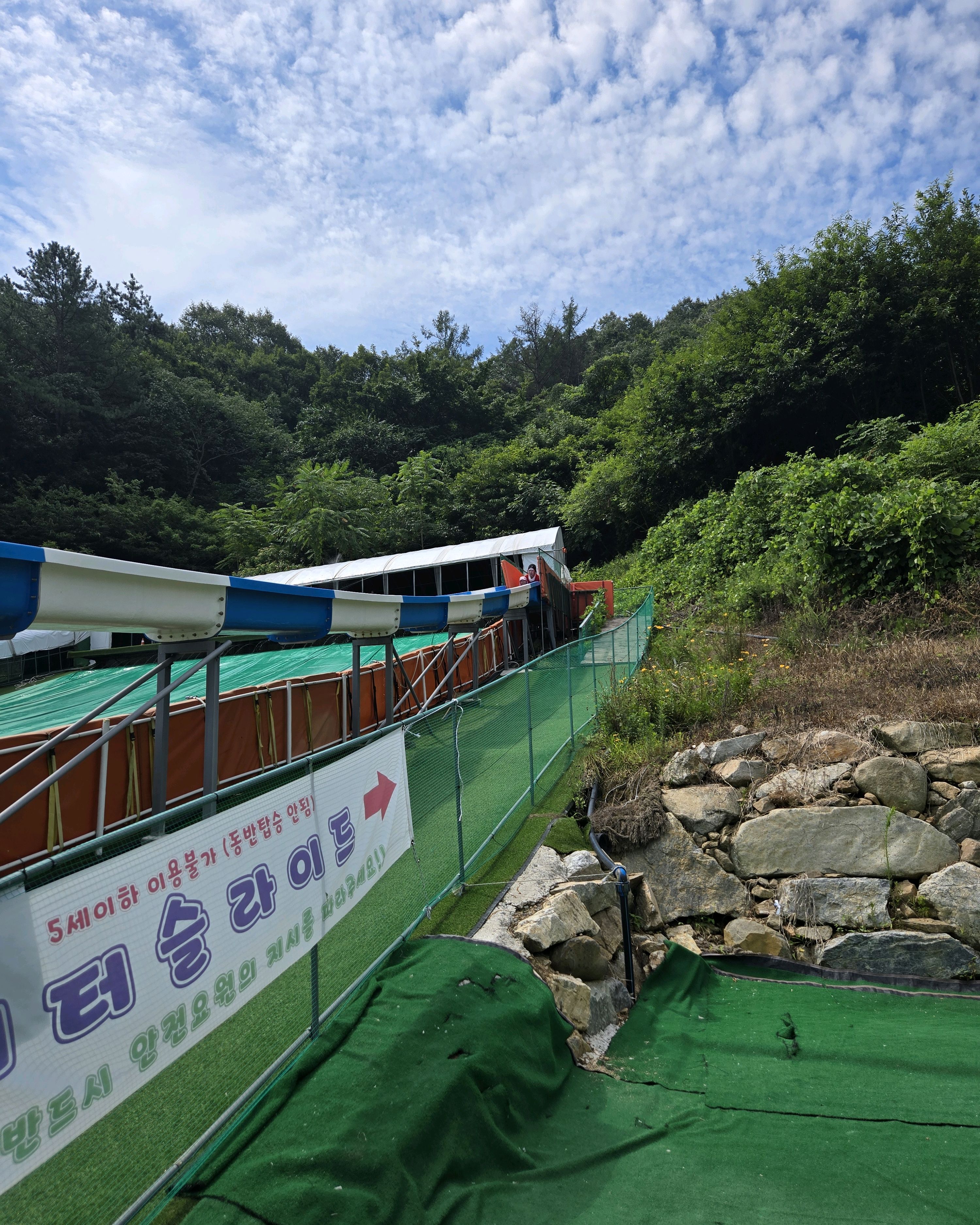 슬라이드를 아이가 타고싶다 하여 갔지만 내려오다 멈추더라고요. 다른사람 타는것을 보아도 다들 내려오다 멈추었습니다.개선이 필요할듯 합니다.물썰매도 마찬가지였습니다.두가지에선 아쉬웠지만 대신 파도유스풀에선 아주 잘놀았어요..파도가 조금만 더 자주 나왔으면 더욱 잼있었을꺼같아요.