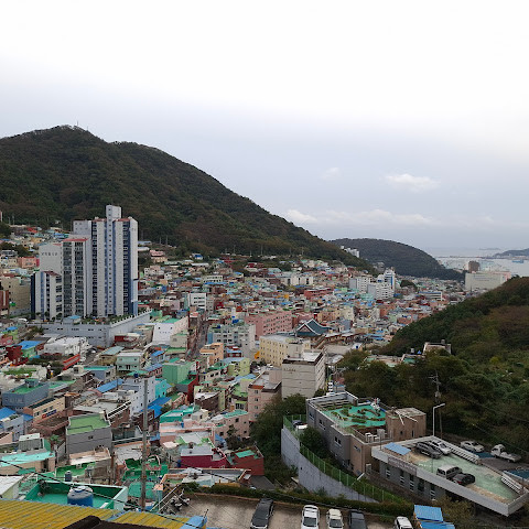 부산의 옛 슬럼가였던 이곳은 도시의 다른 지역과 대조되는 화려한 곳입니다. 놀랍고 독창적인 풍경 덕분에 관광객들에게 인기가 높지만, 동시에 실제로 사람들이 살고 있는 곳이기도 합니다. 마을 입구 꼭대기에 있는 관광안내소에서 추천하는 세 가지 코스 외에도, 작은 골목길을 따라 걷다 보면 숨겨진 비밀 장소들을 발견할 수 있습니다. 매우 가파르기 때문에 유모차 등으로 갈 수 있는 추천 코스를 따라가지 않는 한 계단이 많습니다.
