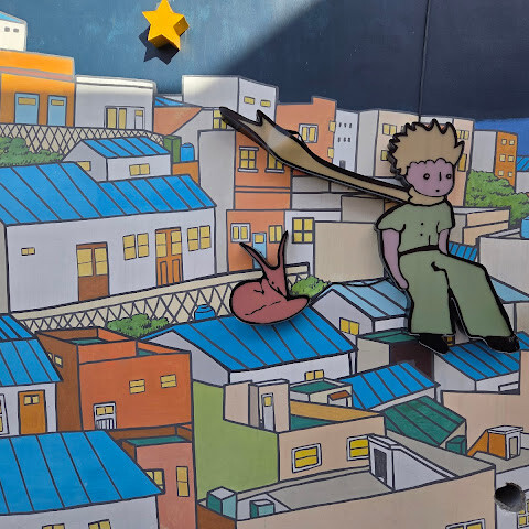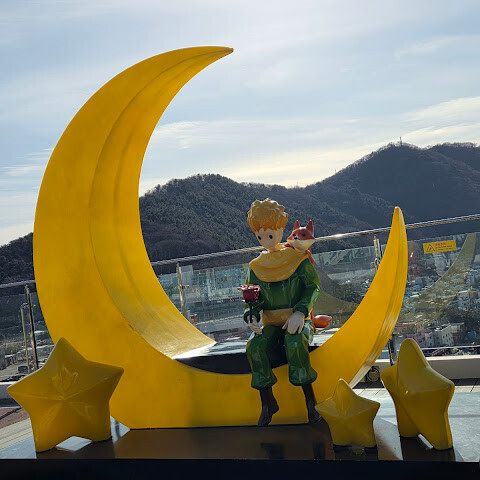 온라인에서 본 것처럼 아름답지는 않아요. 지나가다가 우연히 들르게 된다면 한번 들러보세요. 어린 왕자의 뒷모습을 배경으로 사진을 찍으려는 사람들이 줄을 서 있어요.
