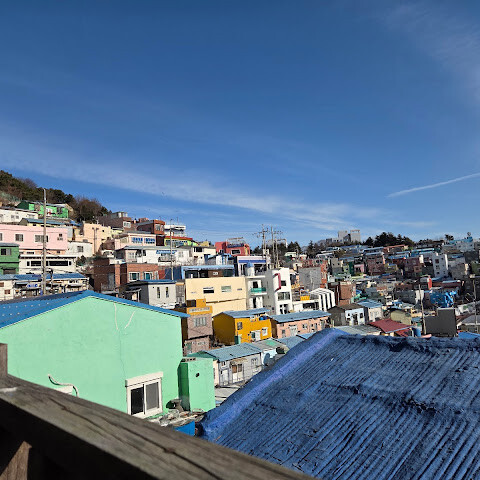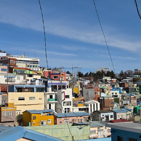 감천 방문은 흐리고 비 오는 하늘 아래 시작되었습니다. 하늘은 모든 색감을 바래게 하고 짙은 안개로 풍경을 가려 한동안 실망스러웠습니다. 하지만 곧 비가 그치고 구름이 걷히면서 햇살이 비추기 시작했습니다. 마치 그림이 살아 움직이는 듯 마을 전체에 불빛이 켜지고, 언덕 아래로 펼쳐진 알록달록한 큐브 모양의 집들, 황금빛 햇살 아래 더욱 돋보이는 생동감 넘치는 벽화와 조각상들, 그리고 멀리 반짝이는 바다가 눈앞에 펼쳐졌습니다. 정말 숨 막힐 듯 아름다운 풍경이었습니다! 감천의 작은 가게들은 저마다의 매력이 있습니다. 독특한 수공예품과 창의적인 기념품을 파는 아기자기하고 예술적인 부티크들이 많으니 현금을 넉넉히 준비하세요. 대부분의 물건들이 구경할 가치가 있고, 마음에 드는 것을 발견할 수 있을 겁니다. 그리고 감천은 여전히 사람들이 살고 일하는 활기찬 동네이므로 방문 시 서로 배려하는 것이 중요합니다. 소음을 줄이고, 다른 사람의 창문이나 문틈으로 들여다보지 말고, 지정된 공공길을 이용해 주세요. 지역 사회를 존중하는 것이 감천의 매력과 진정성을 모두에게 지켜주는 중요한 부분입니다. 저는 언젠가 꼭 다시 이곳에 오고 싶습니다.