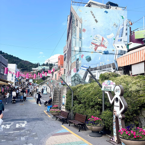부산에 있는 정말 아름다운 마을이에요. 전통적이면서도 다채로워요. 산책도 즐길 수 있고, 멋진 사진과 카페, 상점들을 구경할 수 있는 좋은 장소들도 많아요.