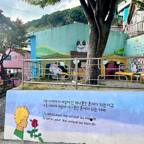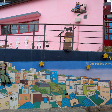 마을은 재개발되어 다채로운 모습으로 탈바꿈했으며, 어린 왕자를 묘사한 벽화와 그림들이 많이 있습니다. 골목길을 헤매며 한 시간 반 정도 시간을 보내며 방문해 볼 만한 곳입니다. 약간의 오르막길과 내리막길을 각오하세요! 부산의 또 다른 작은 보물입니다.