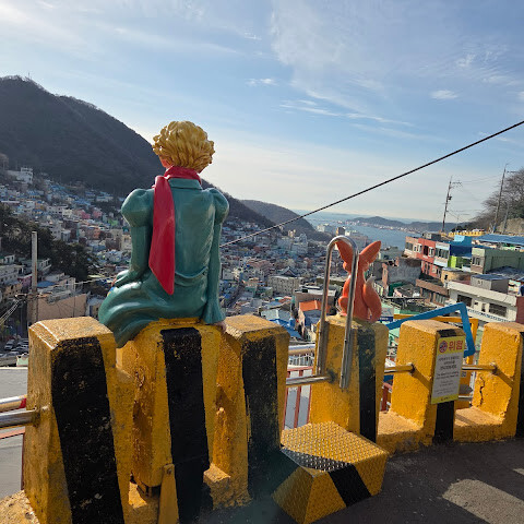 감천동 어린 왕자 동상에 새로운 포토존이 생겼어요. 가봤는데 2026년 1월 10일에는 사람이 별로 없었어요. 지도에서 인기 있는 사진 명소 세 곳도 더 있는데, 관광객들에게 아주 매력적인 곳들이더라고요.