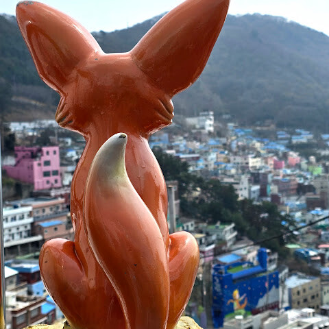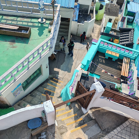 사람들은 감천문화마을을 언덕을 따라 늘어선 알록달록한 집들 때문에 "한국의 산토리니"라고 부르곤 하는데, 그 말이 딱 맞습니다. 아기자기하고 사진 찍기 좋은 곳이지만, 관광객이 정말 많아요. 비수기인데도 불구하고 생각보다 사람이 많았습니다.