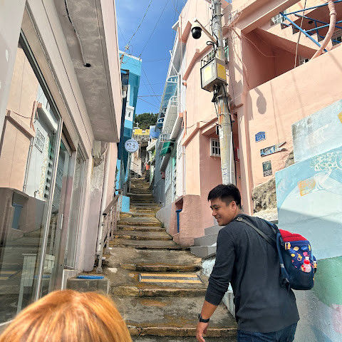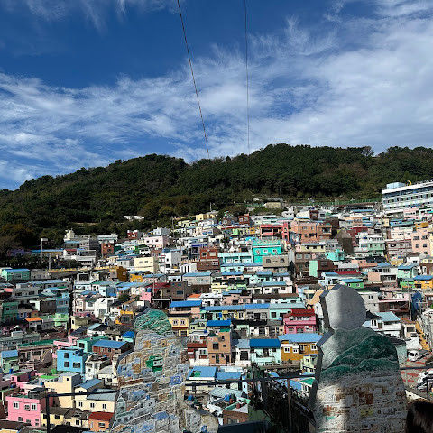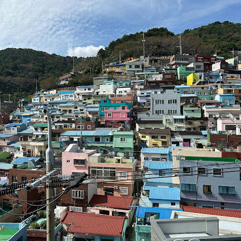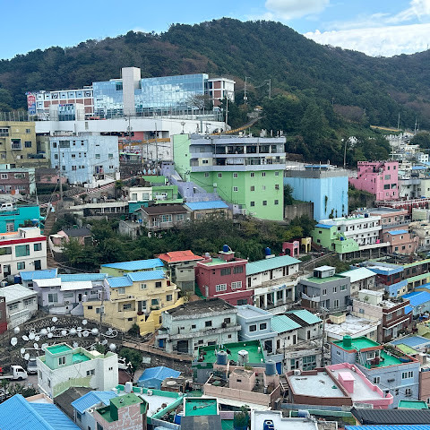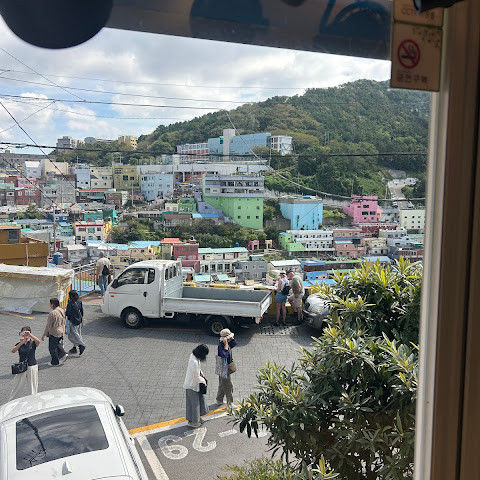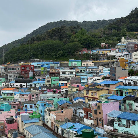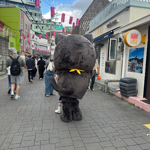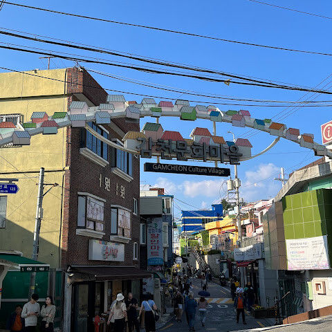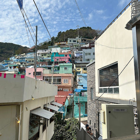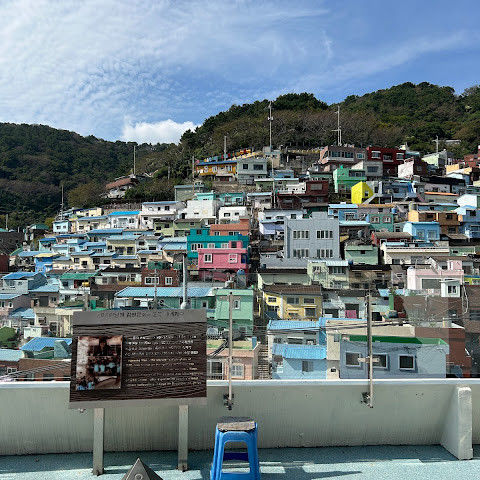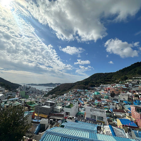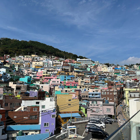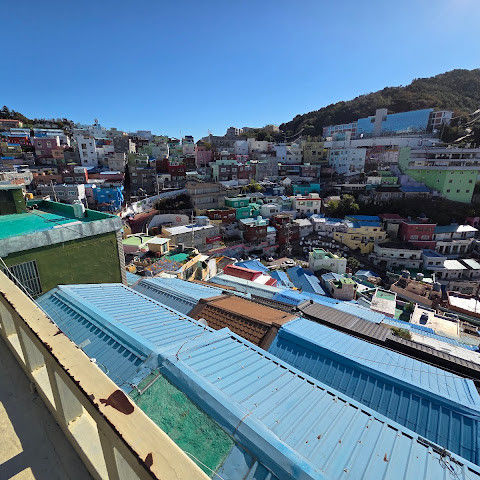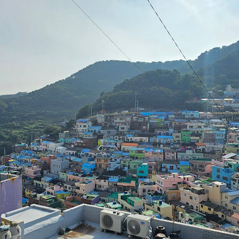 감천문화마을은 정말 아름다워서 꼭 가봐야 할 곳입니다. 가게들이 언제 문을 여는지 몰라서 아침 일찍 도착했는데, 마을이 한적해서 정말 좋았습니다. 운동하는 친절한 주민들을 많이 만났고, 유명한 사진 촬영 장소도 둘러볼 수 있었습니다. 마을 뒤편 꼭대기에 있는 스포츠 빌딩 밖에 앉아 있기도 했습니다. 빌딩 꼭대기에는 전망대가 있었는데, 원래는 오전 9시에 문을 열 예정이었는데, 건물 직원분들이 친절하게 안내해 주시고 옥상까지 개인 에스코트까지 해 주셨습니다. 저희는 직접 마을 전체를 둘러볼 수 있었습니다! 마을은 무료로 방문할 수 있고 항상 열려 있습니다. 하지만 가게와 식당은 오전 9시에야 문을 엽니다.
