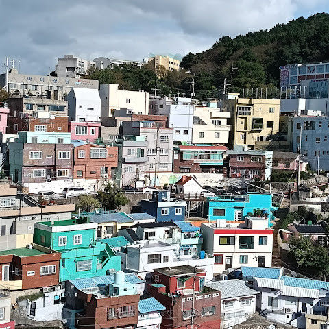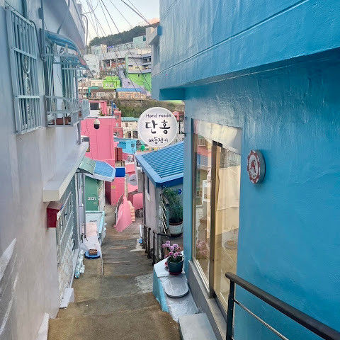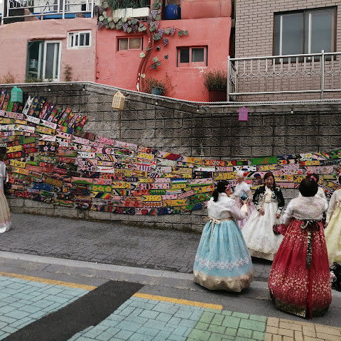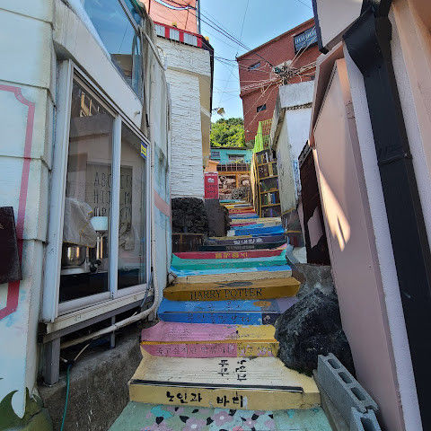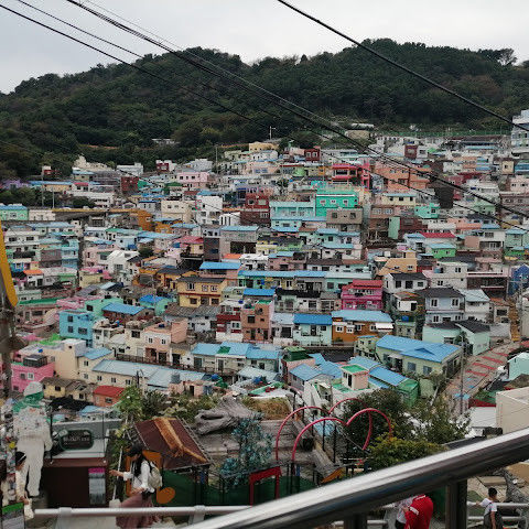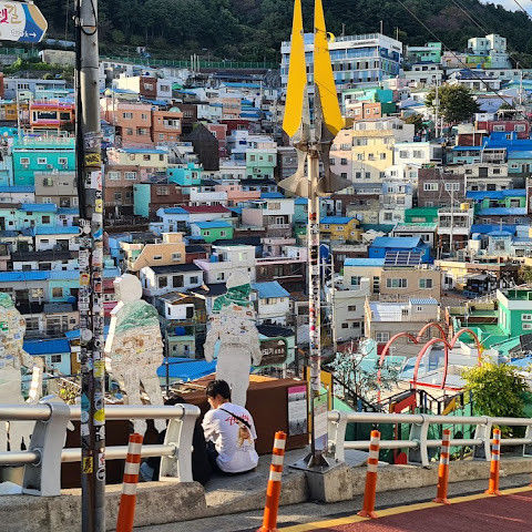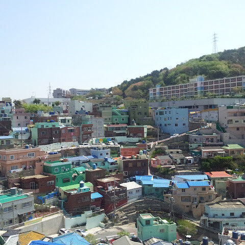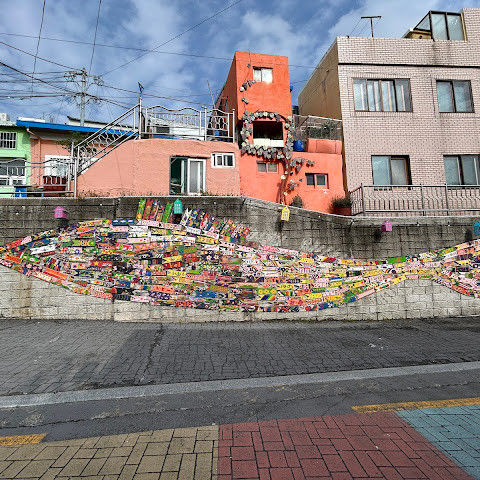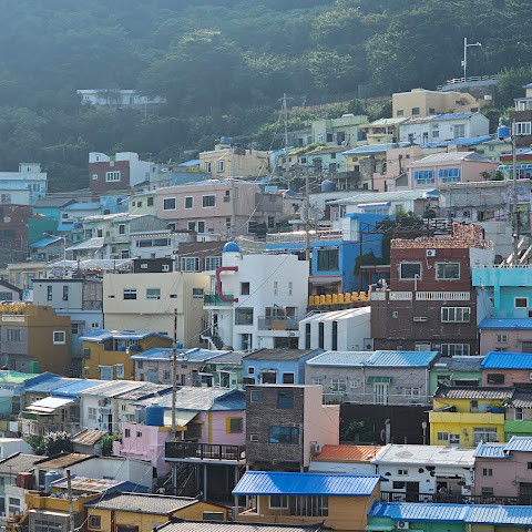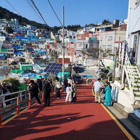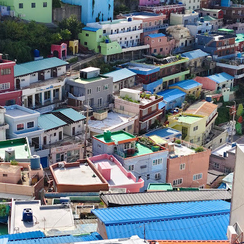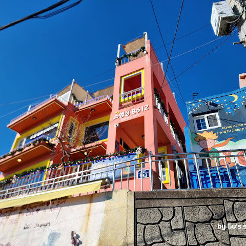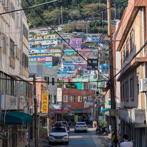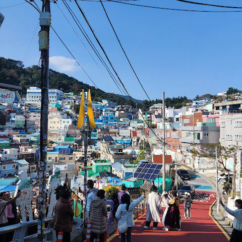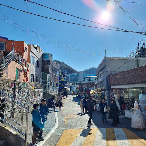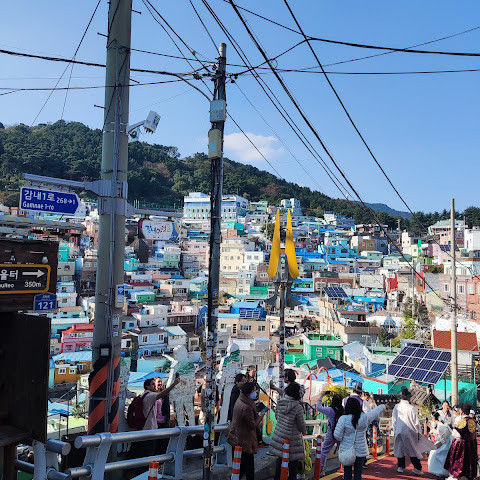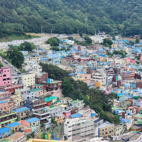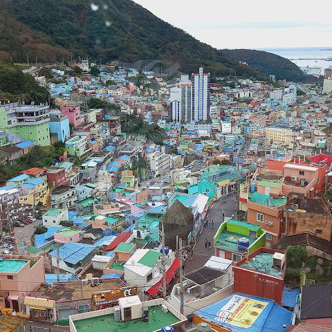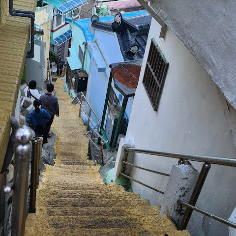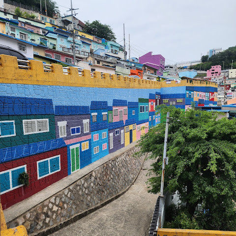 부산의 옛 슬럼가였던 이곳은 도시의 다른 지역과 대조되는 화려한 곳입니다. 놀랍고 독창적인 풍경 덕분에 관광객들에게 인기가 높지만, 동시에 실제로 사람들이 살고 있는 곳이기도 합니다. 마을 입구 꼭대기에 있는 관광안내소에서 추천하는 세 가지 코스 외에도, 작은 골목길을 따라 걷다 보면 숨겨진 비밀 장소들을 발견할 수 있습니다. 매우 가파르기 때문에 유모차 등으로 갈 수 있는 추천 코스를 따라가지 않는 한 계단이 많습니다.