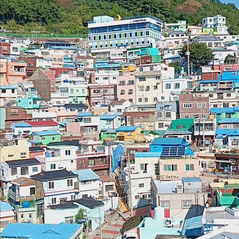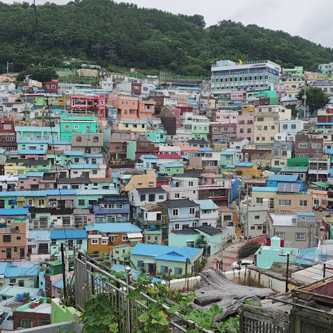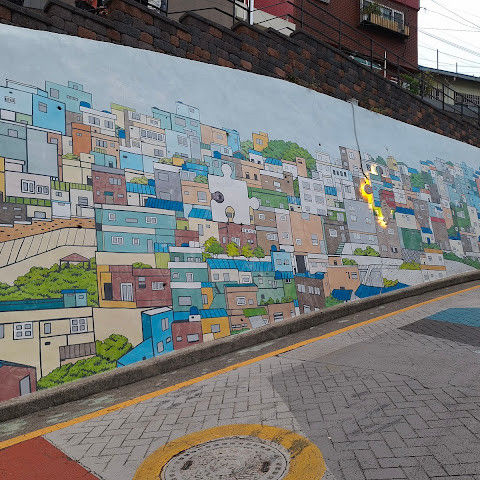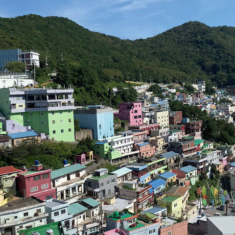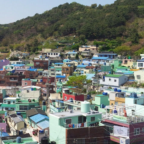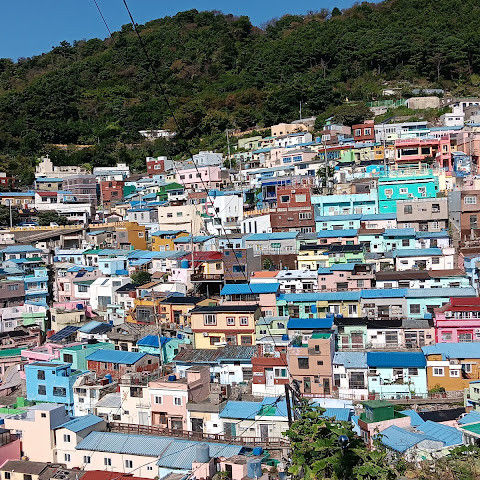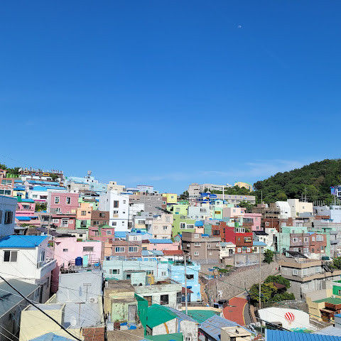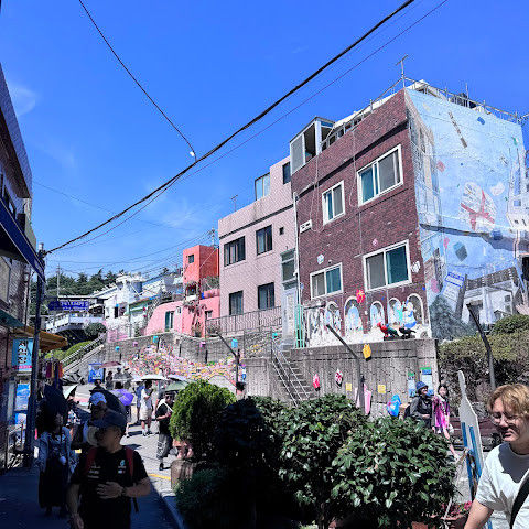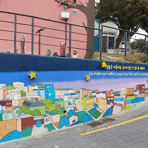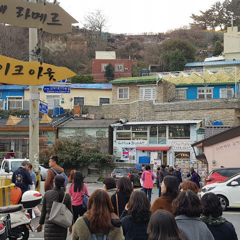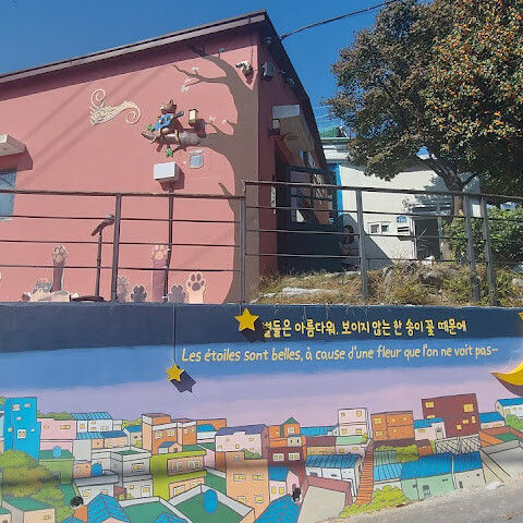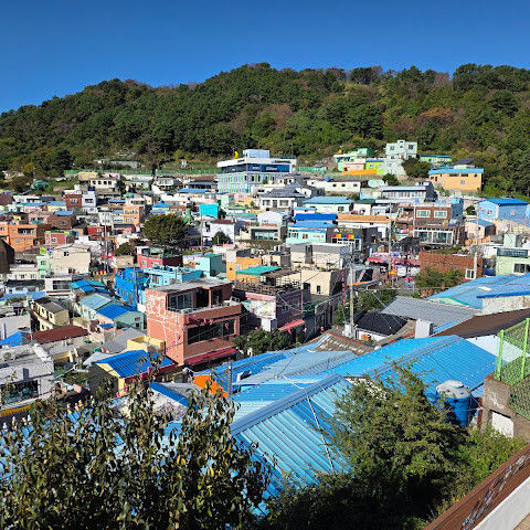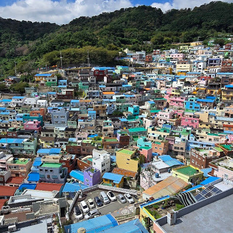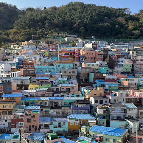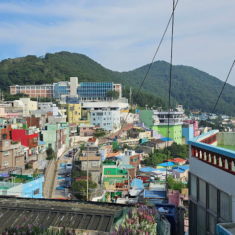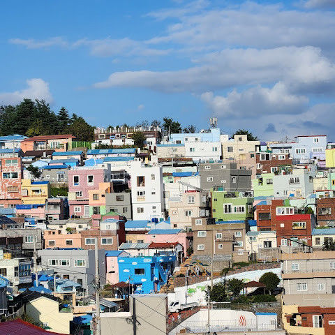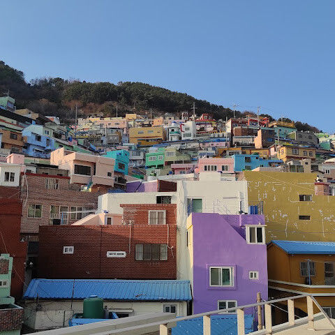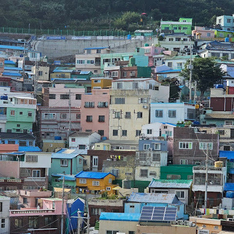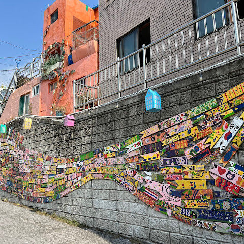 부산의 옛 슬럼가였던 이곳은 도시의 다른 지역과 대조되는 화려한 곳입니다. 놀랍고 독창적인 풍경 덕분에 관광객들에게 인기가 높지만, 동시에 실제로 사람들이 살고 있는 곳이기도 합니다. 마을 입구 꼭대기에 있는 관광안내소에서 추천하는 세 가지 코스 외에도, 작은 골목길을 따라 걷다 보면 숨겨진 비밀 장소들을 발견할 수 있습니다. 매우 가파르기 때문에 유모차 등으로 갈 수 있는 추천 코스를 따라가지 않는 한 계단이 많습니다.