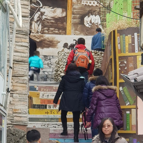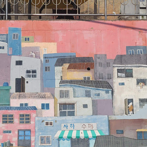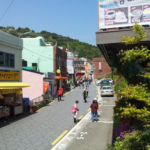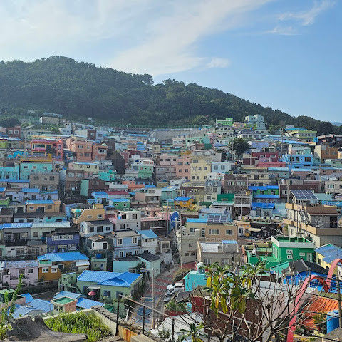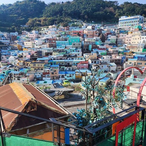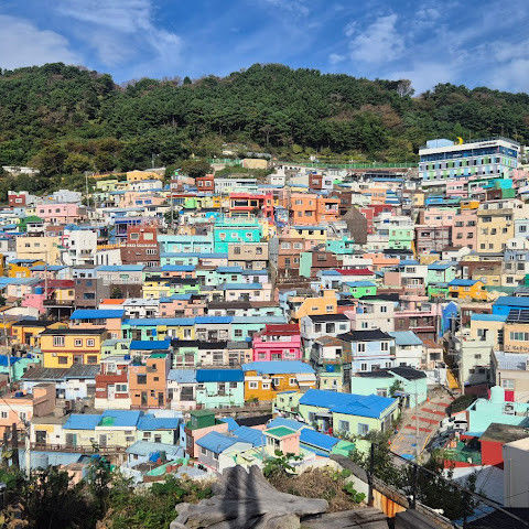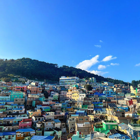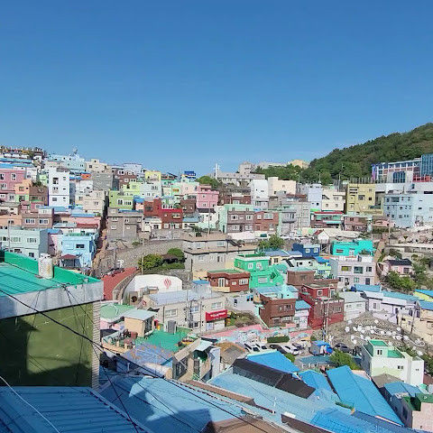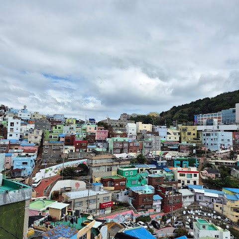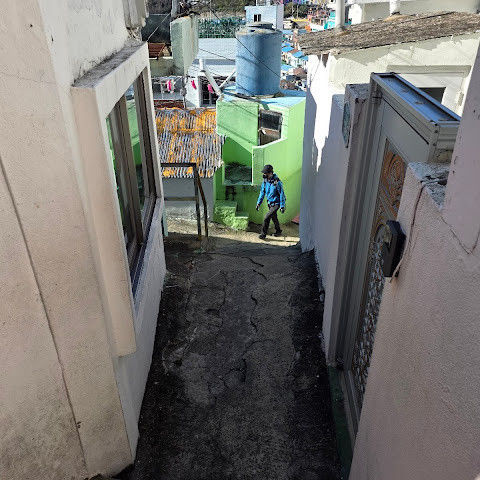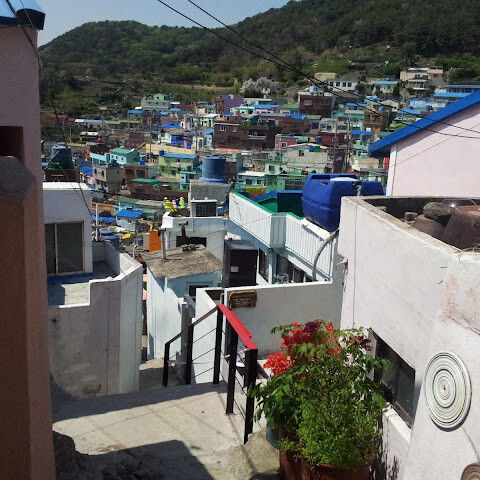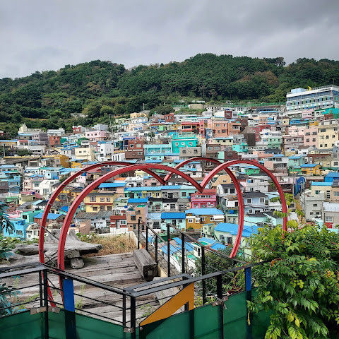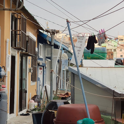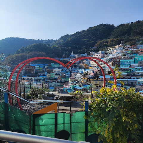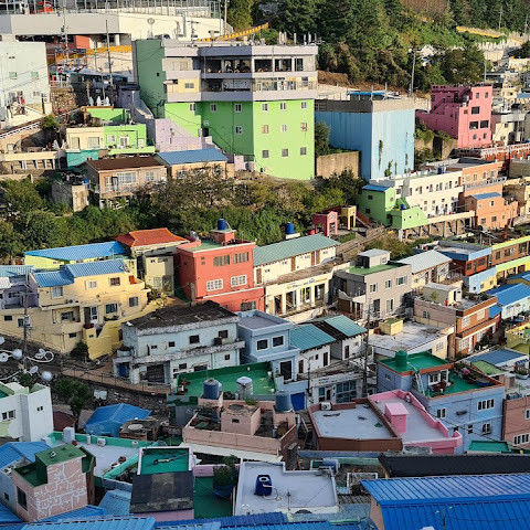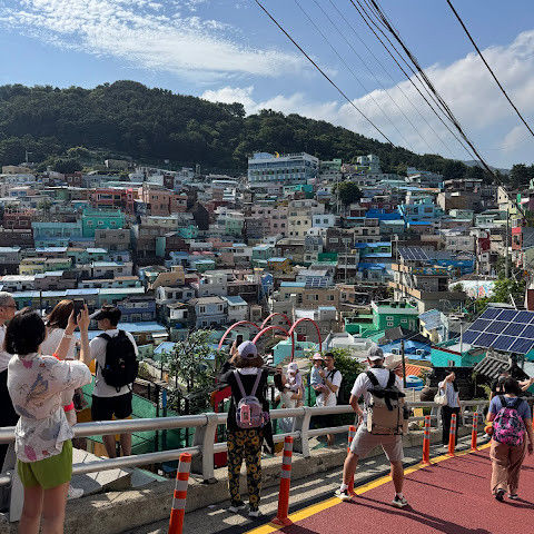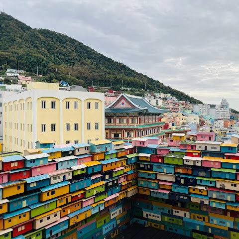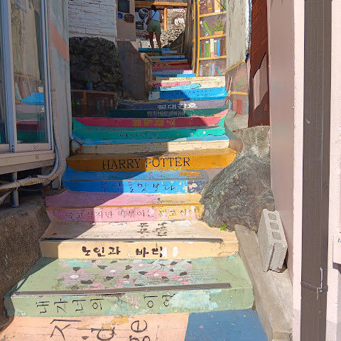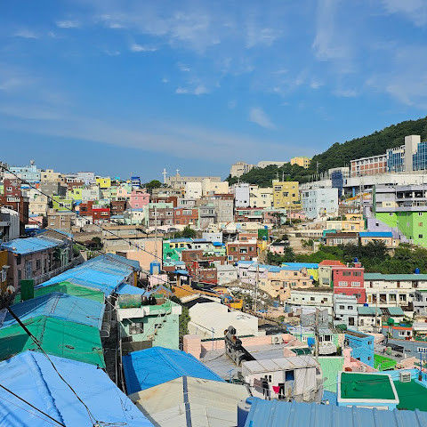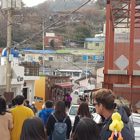 부산의 옛 슬럼가였던 이곳은 도시의 다른 지역과 대조되는 화려한 곳입니다. 놀랍고 독창적인 풍경 덕분에 관광객들에게 인기가 높지만, 동시에 실제로 사람들이 살고 있는 곳이기도 합니다. 마을 입구 꼭대기에 있는 관광안내소에서 추천하는 세 가지 코스 외에도, 작은 골목길을 따라 걷다 보면 숨겨진 비밀 장소들을 발견할 수 있습니다. 매우 가파르기 때문에 유모차 등으로 갈 수 있는 추천 코스를 따라가지 않는 한 계단이 많습니다.