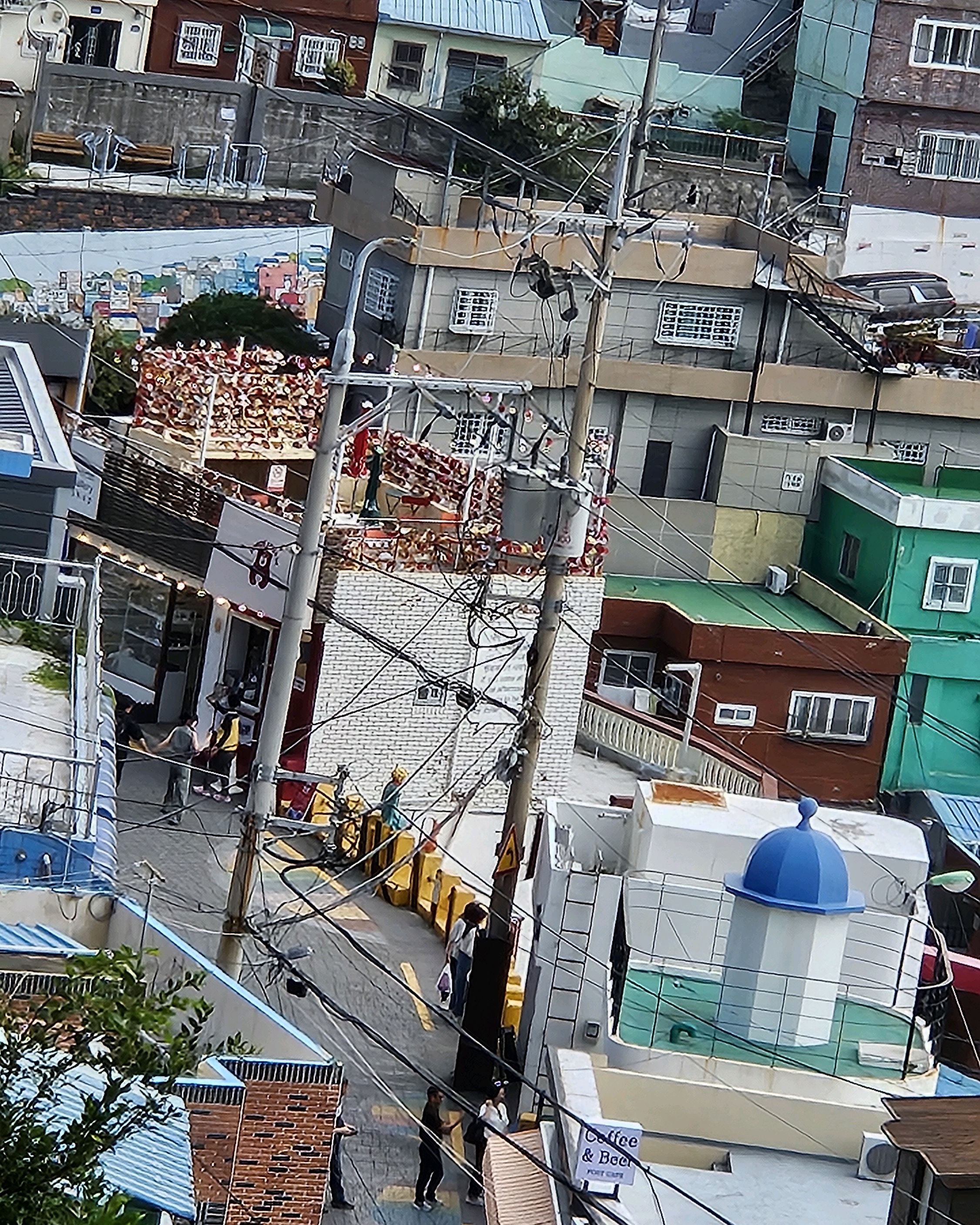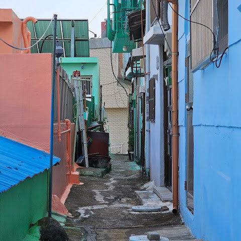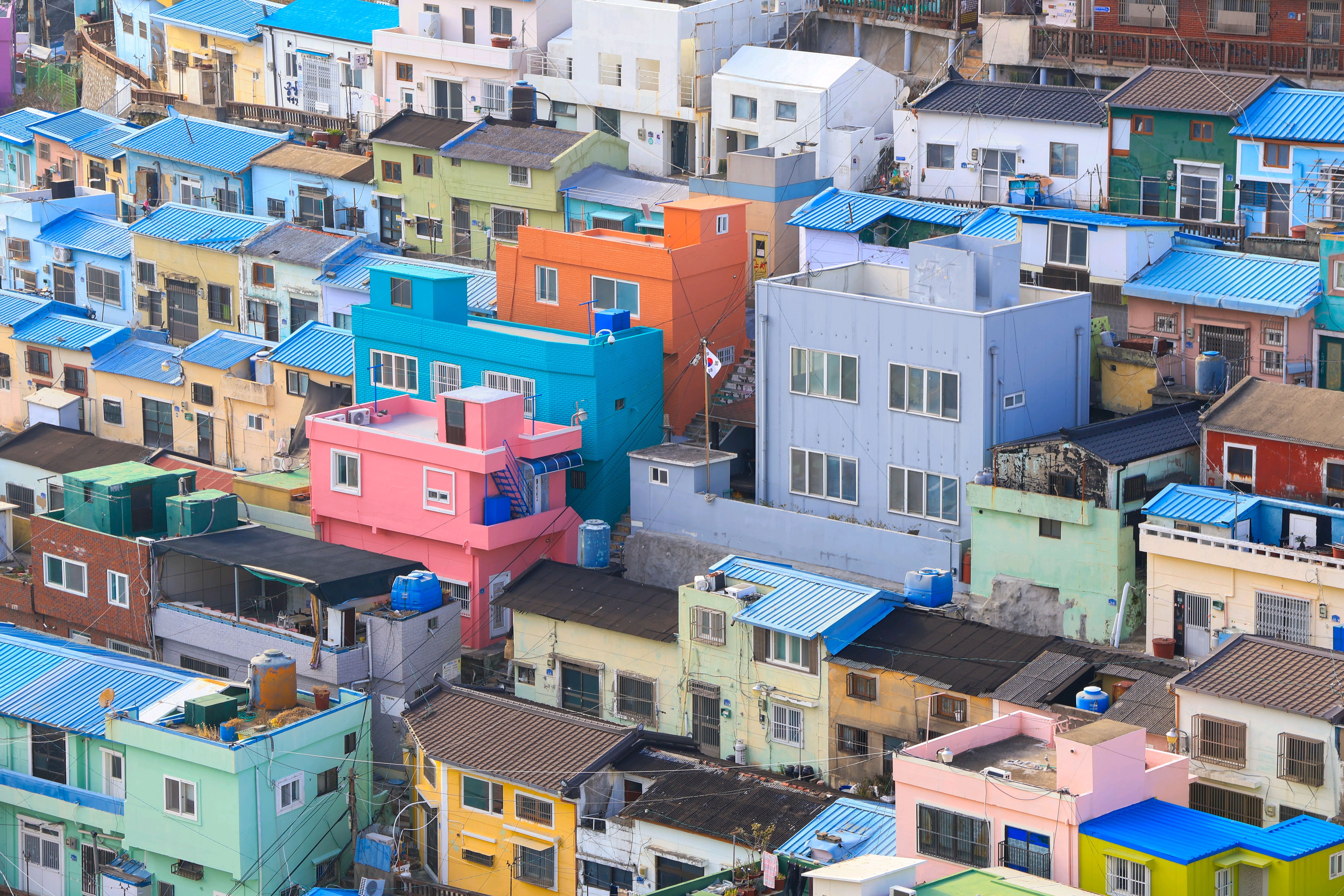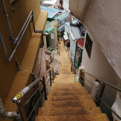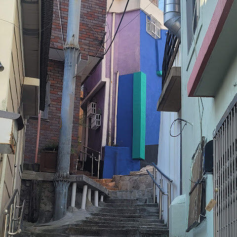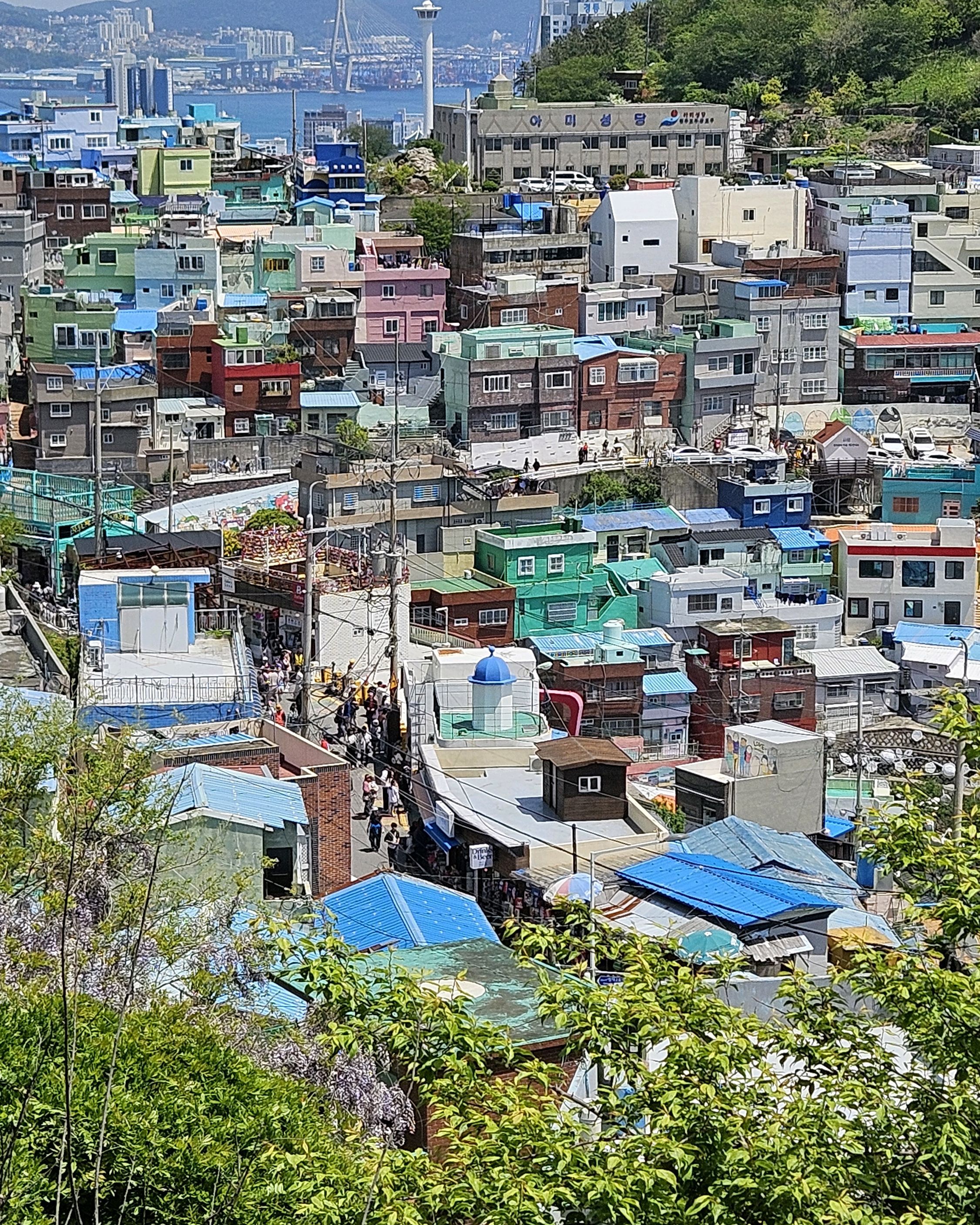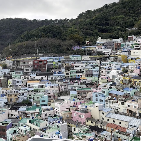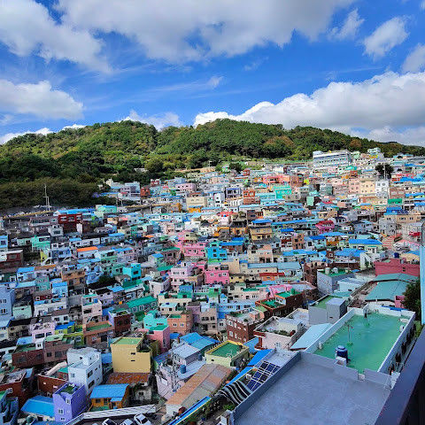 부산의 옛 슬럼가였던 이곳은 도시의 다른 지역과 대조되는 화려한 곳입니다. 놀랍고 독창적인 풍경 덕분에 관광객들에게 인기가 높지만, 동시에 실제로 사람들이 살고 있는 곳이기도 합니다. 마을 입구 꼭대기에 있는 관광안내소에서 추천하는 세 가지 코스 외에도, 작은 골목길을 따라 걷다 보면 숨겨진 비밀 장소들을 발견할 수 있습니다. 매우 가파르기 때문에 유모차 등으로 갈 수 있는 추천 코스를 따라가지 않는 한 계단이 많습니다.