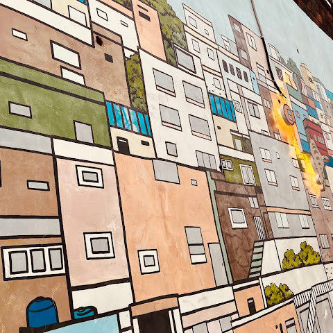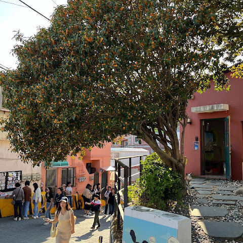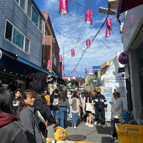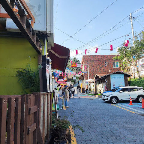산책하며 사람 구경하기 정말 좋은 곳이에요. 특히 한국인들이 지정된 장소에서 사진을 찍는 모습이 정말 멋졌어요. 작은 개인 상점과 카페 등이 많았어요. 거리 예술과 알록달록한 건물들이 정말 마음에 들었어요.
