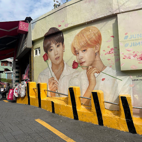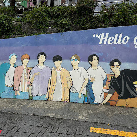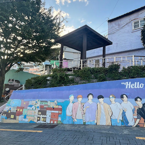 경치가 매우 아름답고, 정말 평화로운 느낌이 들며 사진을 찍을 수 있는 곳도 많습니다. 군인이라면 BTS 벽화가 두 개 있어서 사진을 찍을 수 있기 때문에 좋아할 것입니다.