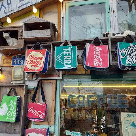 감천문화마을에서 가장 감천스러운 기념품을 많이 파는 소행성612기념품숍입니다. 외국 친구가 있다면 이 곳에 꼭 데리고 오고 싶어요~메인거리에 있긴 한데 잘 보아야 입구를 찾을 수 있습니다. 지하에 있어요~