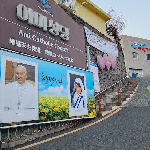 주말에는 만차인 경우가 많아서 주차장 위쪽 골목길과 학교 운동장에 주차합니다.