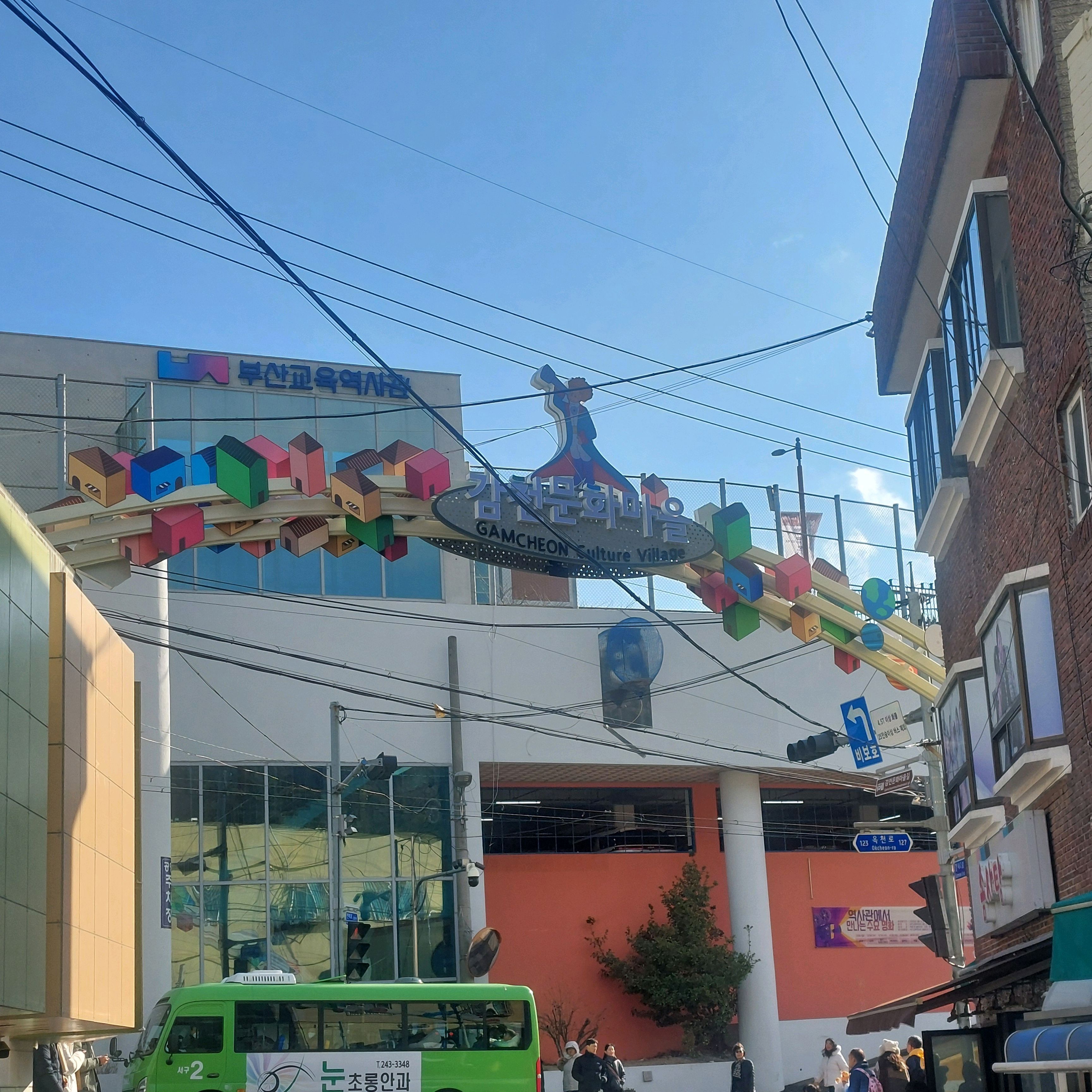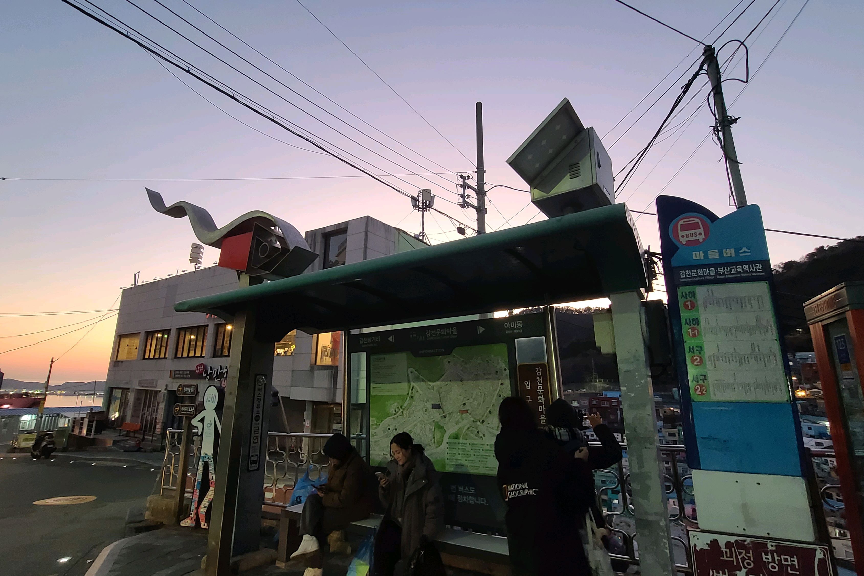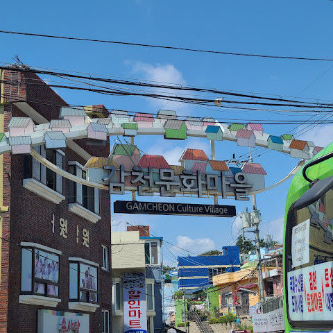 마을버스 정류장에서 내리면 바로입니다. 오후5시 이후에는 감천마을이 다 문을 닫으니 낮에 가야 꼼꼼히 구경하시기 좋아요. 늦은 시간에 갑자기 갔는데 버스 내리지마자 노을이 너무 멋있어서 숨멎했습니다^^ 당연코 부산 노을맛집중 하나입니다. 하지만 그 시간에 가면 마을을 제대로 구경하시기는 힘듭니다ㅋㅋㅋ