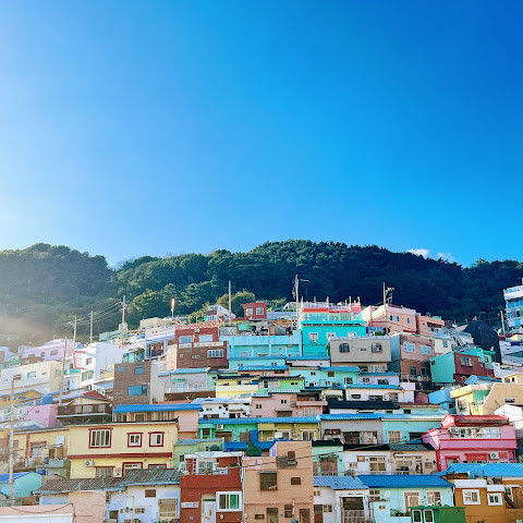 정면으로는 청량한 부산의 바다, 뒤로는 조화롭게 어우러진 건물들이 마치 동화 속 마을을 연상케 합니다. 전쟁의 아픔을 간직한 곳이지만, 시간과 함께 상처는 아물고 이제는 부산을 대표하는 관광지가 되었습니다.