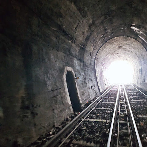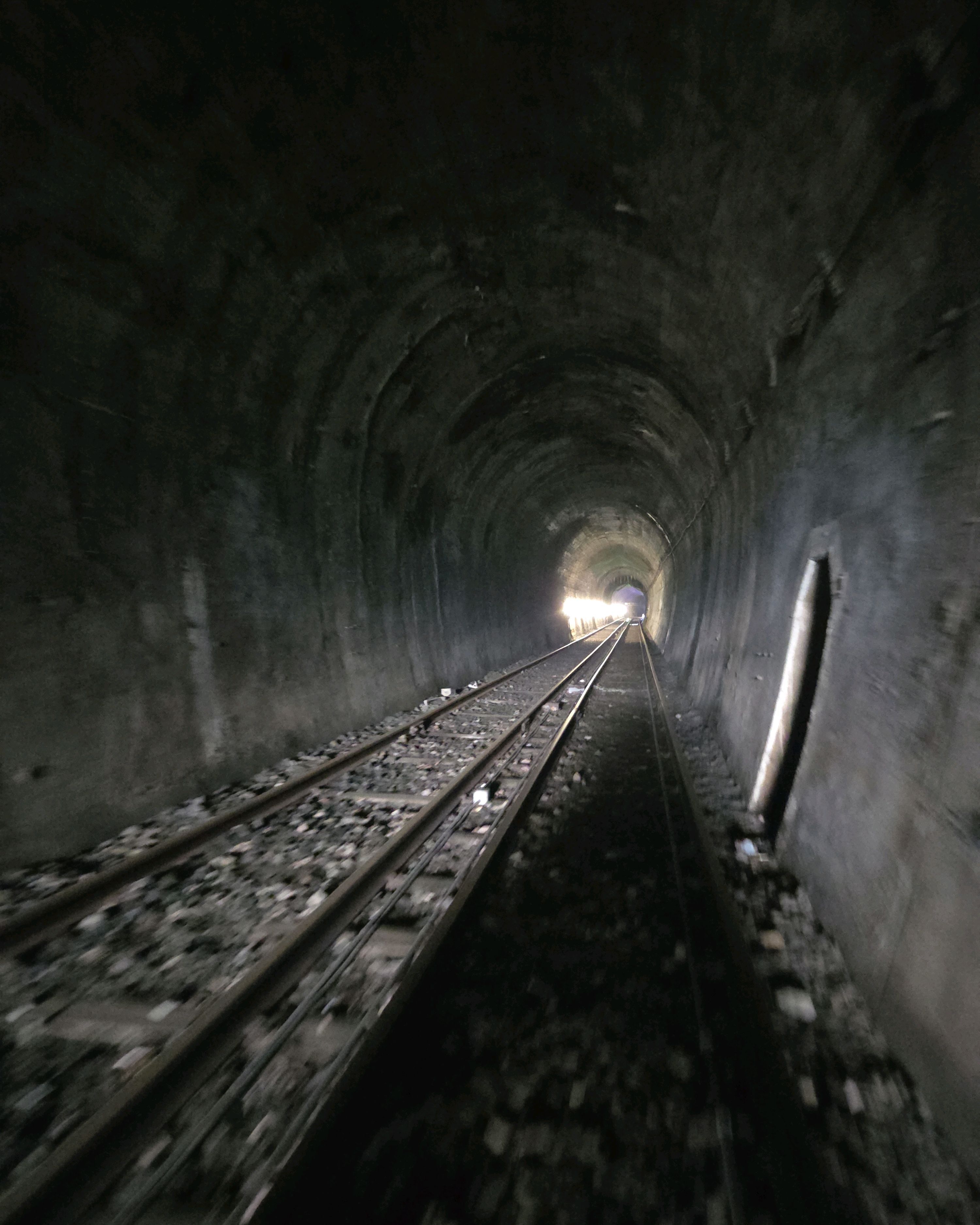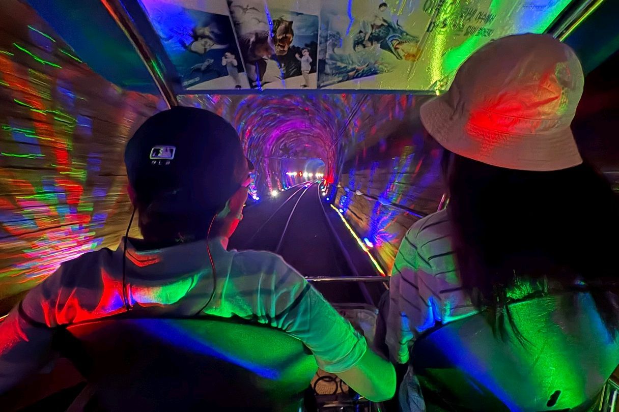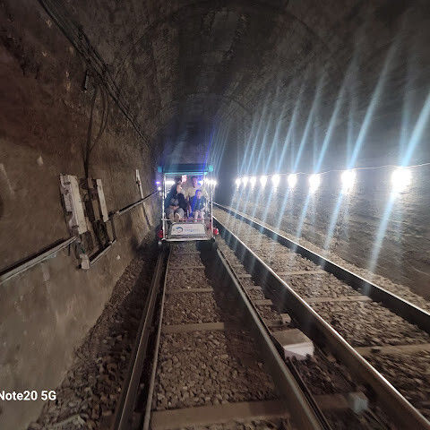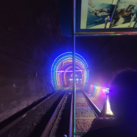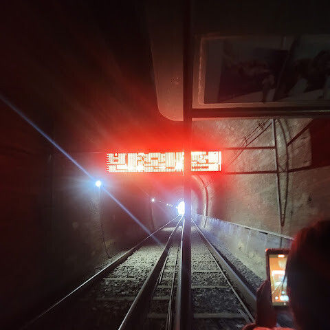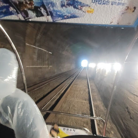 😮💨실망이예요 출발하기전 브레이크 체크했는데 50미터 갔나? 카메라든 아저씨 정지하라고... 정지선 넘어 정지했더니 굳은표정으로 브레이크점검 한거라고^^;;; 누가봐도 사진찍는 분인데 다시 출발~ 계속 내리막 레일연결부가 너무 덜컹거려서 내려가는 내내 엉덩이 아팠어요😖 탑승장에 방석있는 이유 알것같아요 그래도 터널이 있기에 기대하며 들어가는데 블로그에서 봤던 멋진 불빛 어디로 갔니😐😐😐 턴해서 올라올때 날 기다리는건 오르막길뿐 운동 제대로 했어요🤣 다시 안가요
