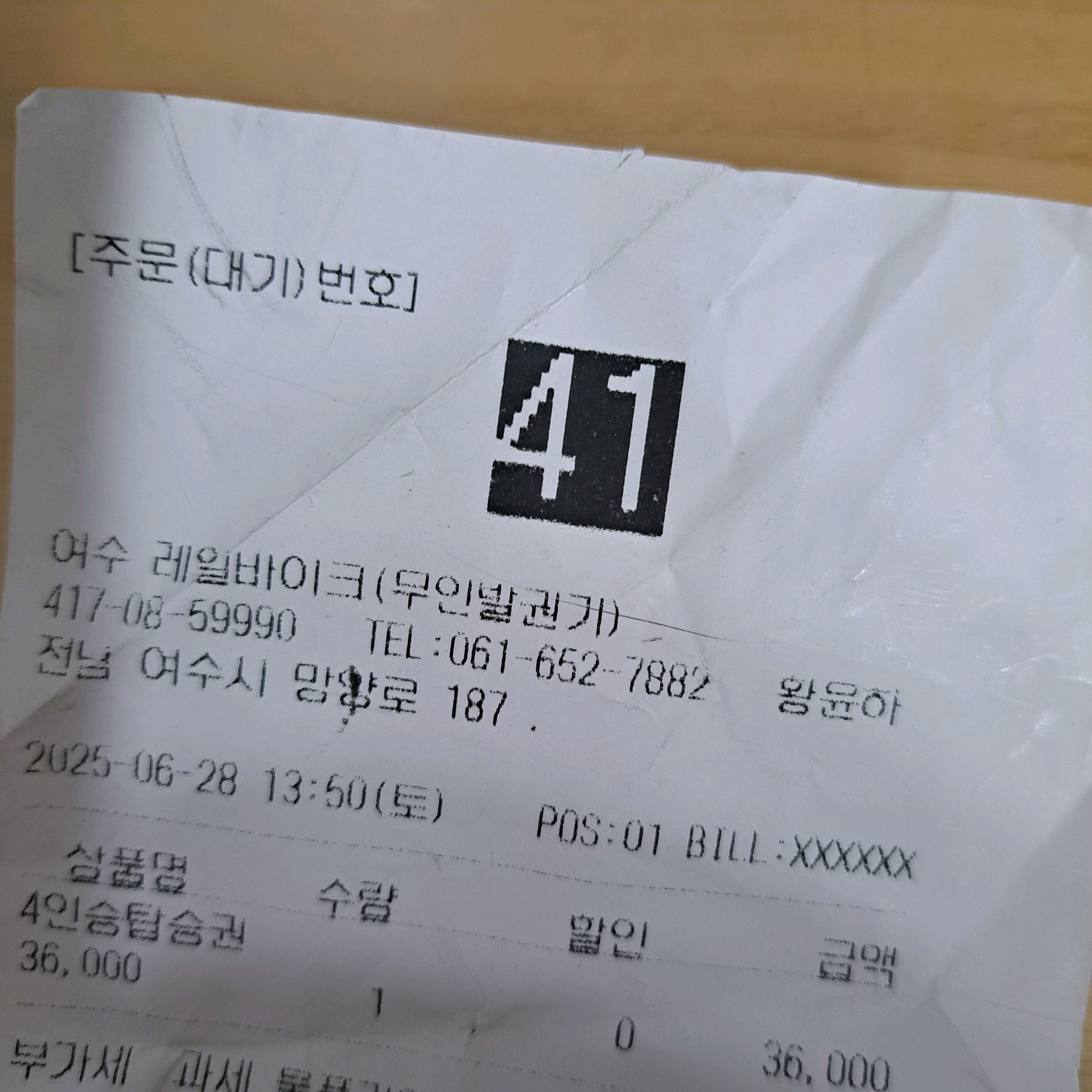 아이와 여수레일바이크 타고 왔어요😚 뷰가 정말 예쁘네요~🛤 바다위에 떠 있는 큰 배를 보고 깜짝 놀랐어요🛥🚢 갈땐 내리막길이라 편했는데 올 땐 조금 힘들었어요. 하지만 아이와 서로 응원하는 추억에 남는 시간이었어요~ 또 가려구요^^🤗 (2025.06.03 기준 2인승탑승권 26,000원)
