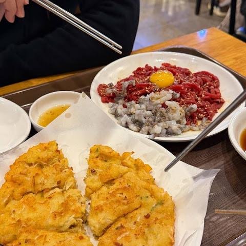 녹두전, 생소고기, 생낙지를 주문했는데 모두 평범한 맛이었습니다. 제가 무엇을 먹고 있는지조차 몰랐습니다.