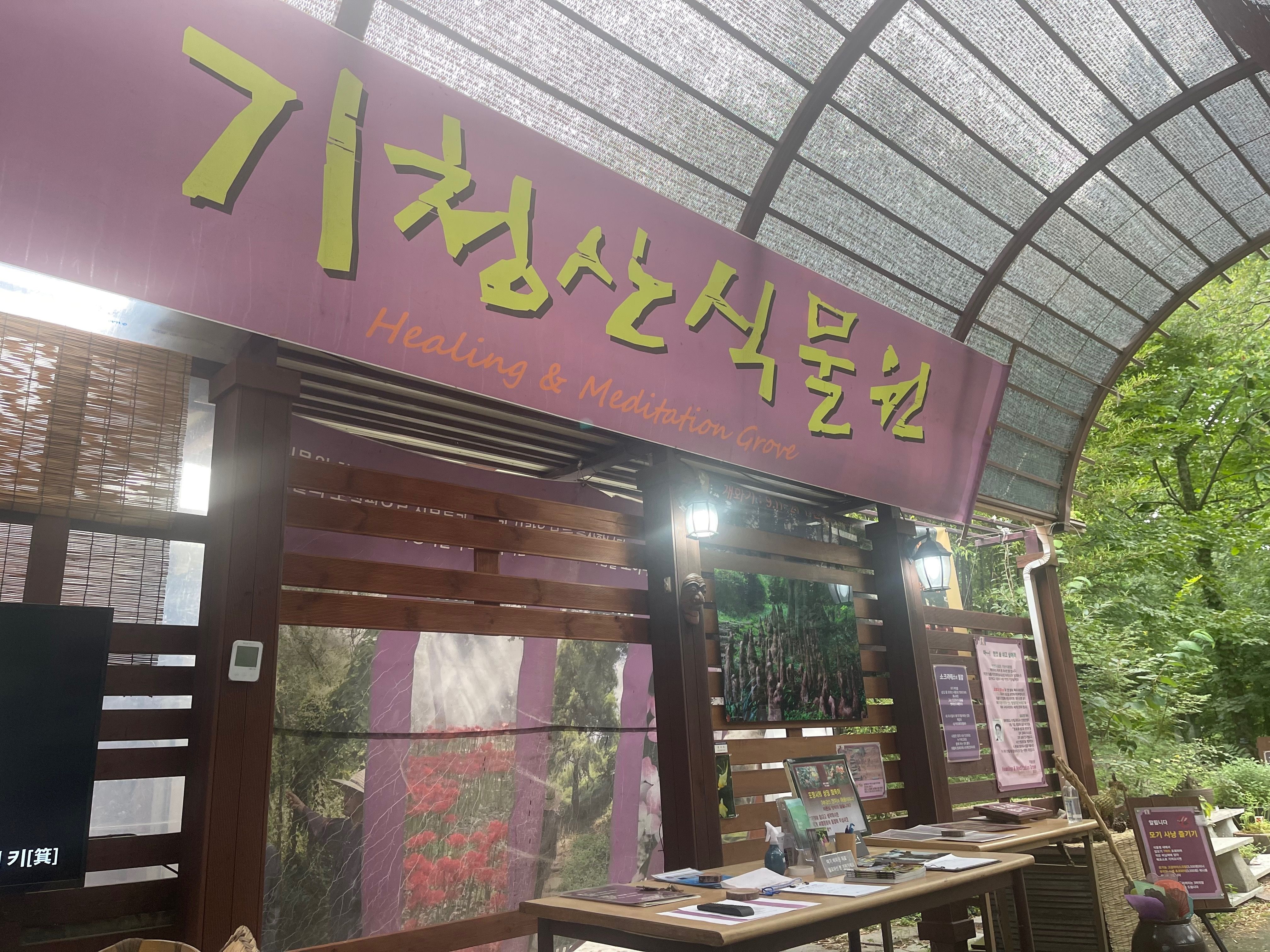보통 식물원이라고 여러 종류의 식물을 전시해놓고 관람하는 방식이 일반적이다. 하지만 기청산식물원은 이런 나의 기존 통념을 뛰어넘는 색다른 컨셉의 식물원이었다. 정제되지 않아 거칠고 야생적이다. 그래서 더욱 매력있다. 알고 찾아가지 않으면 입구는 식물원인지 그냥 숲속인지 알 수 없다. 조심스레 발걸음을 딛다 보면 작지만 예쁜 정원이 시야에 들어오고 잔잔한 음악이 흘러나온다. 마치 딴 세계에 온 듯한 판타지한 느낌! 수목원 스탬프도 찍을 수 있고 여러가지 체험도 할 수 있는 식물원이다. 그리 크진 않지만 위에 말했듯 기존 식물원과는 달리 자연 생태 그대로를 온 몸으로 느낄 수 있다. 지저귀는 새소리, 시원하게 부는 바람, 그 바람에 바스라지듯 반응하는 자연의 소리에 간만에 제대로 된 '힐링'을 경험한다. 최고다