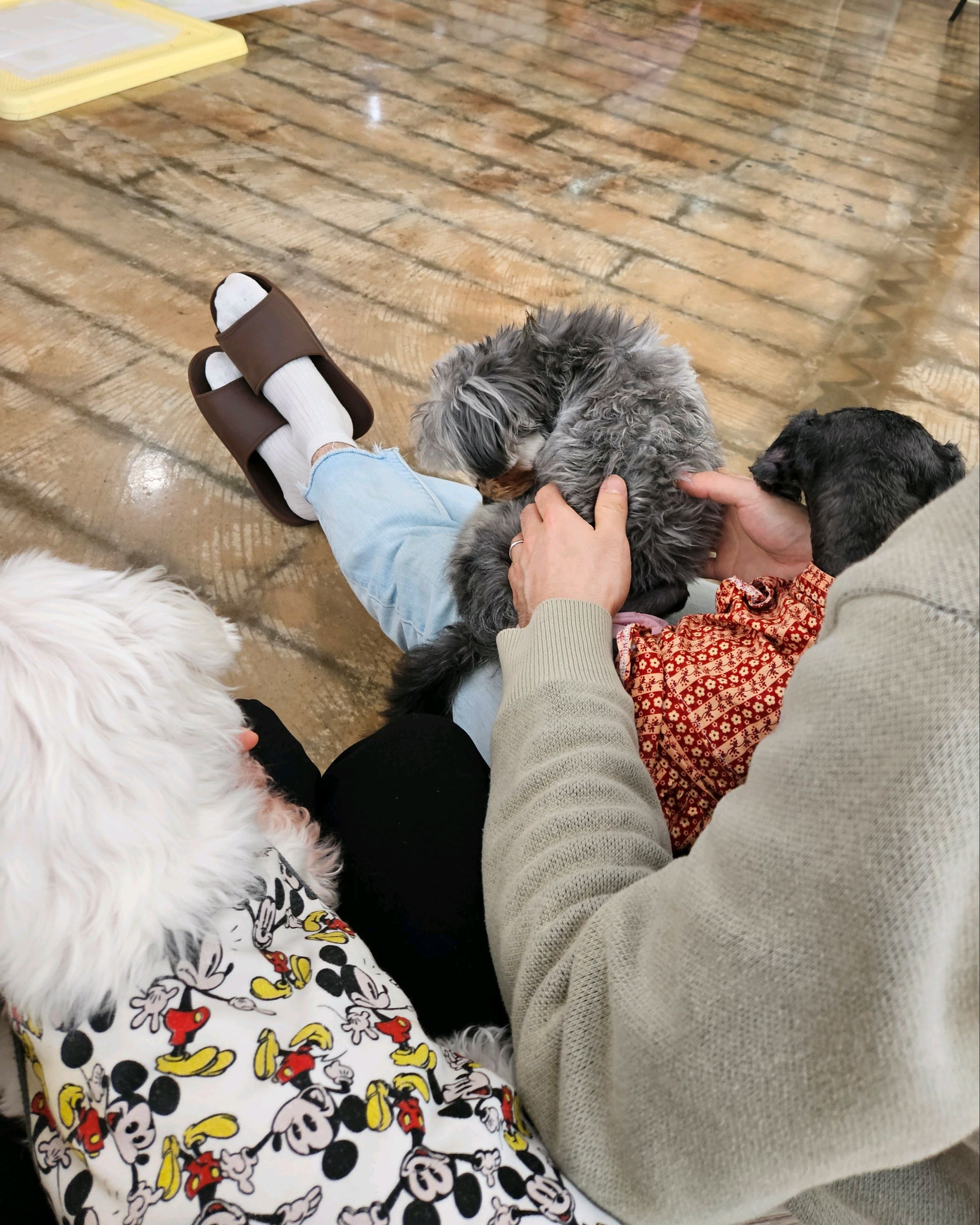 강아지들 너무 귀엽고 앉아있으면 다가와서 무릎에 앉아요 정말 행복합니다..🥹
