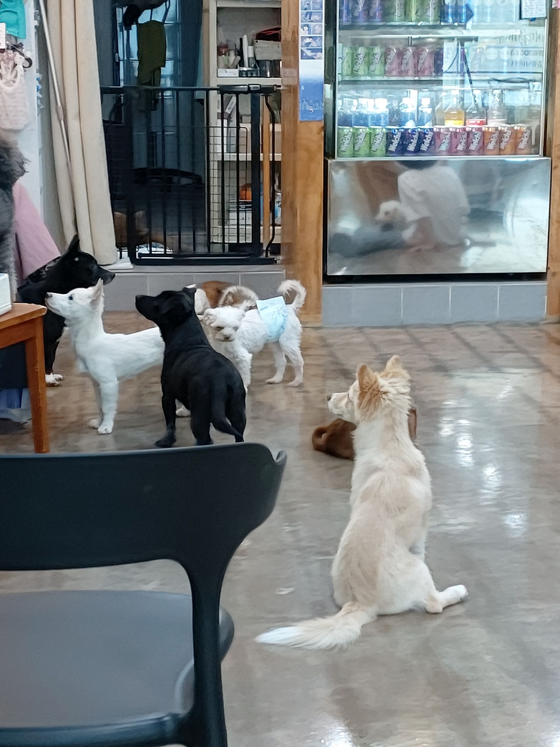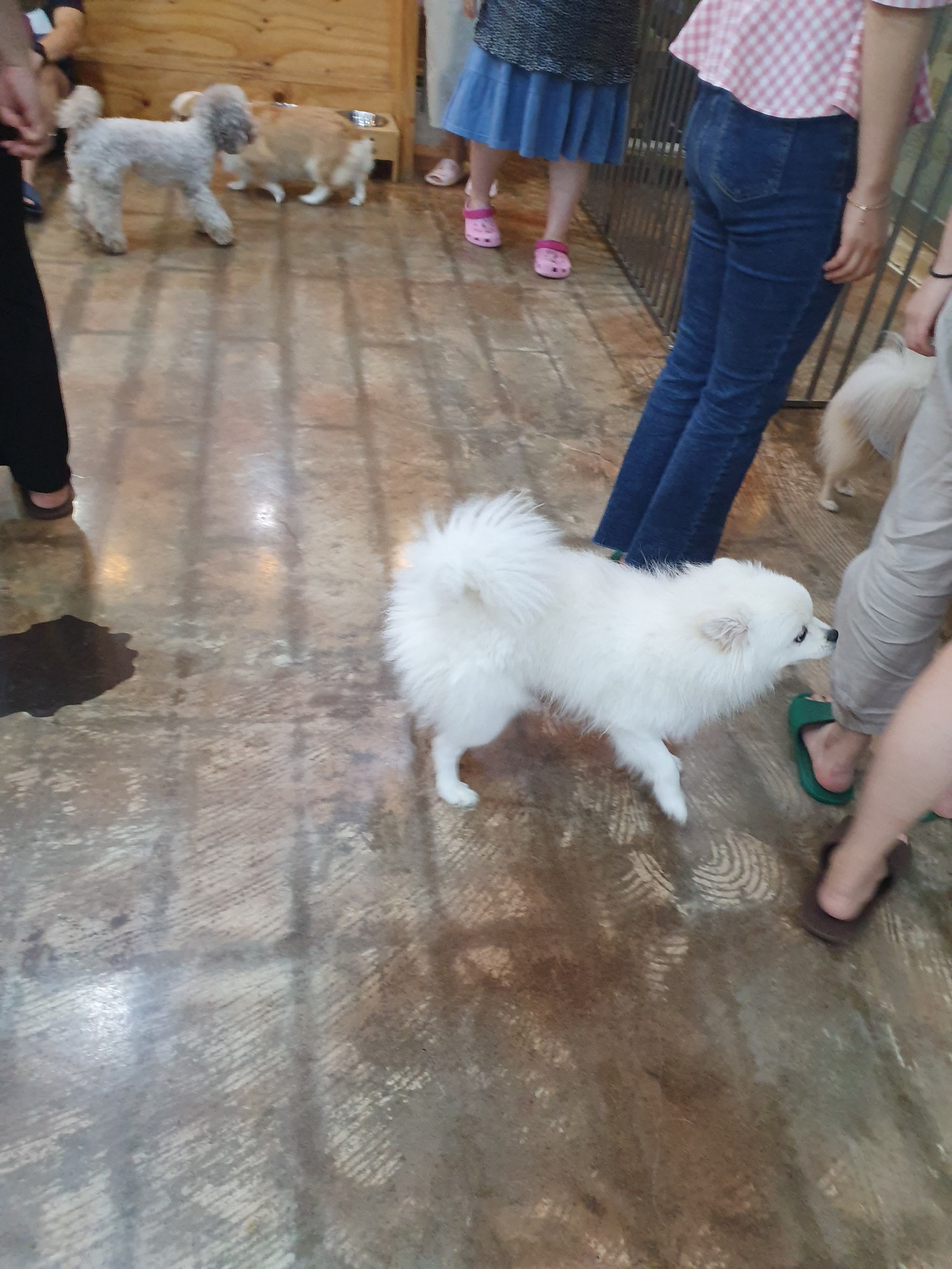 소리 짖는 친구, 먼저 다가와서 안기는 친구, 조용한 친구 다양한 친구들이 있었어요 ㅋㅋ 짖어도 무섭지 않습니다 !! 음료도 다른 곳에 비해 저렴한 편 같아요 ㅎㅎ 주차도 근처에 공영주차장 많아서 주말에 이용 편합니다. 주말에 갔는데 손님 없어서 편하게 있다가 왔네요 :) 다음에 또 갈게요 !!