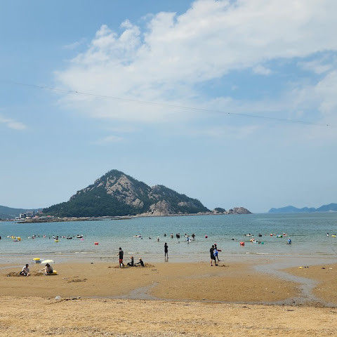 경치도 좋고 수심이 생각보다 깊어요 3-4미터만 나가도 깊은데 파도는 잔잔해서 아이들도 어른들도 즐겁게 놀 수 있습니다. 무릎깊이만 들어가도 멸치같은 물고기들이 떼로 다니고 파라솔도 무료고 좋은데 줌바공연 등 행사때문인지 음악소리가 너무 시끄러웠습니다. 이 곳에 온 사람들은 좀 조용하고 한적한 곳을 찾아온 거 아닐까요...? 암튼 저희한테는 옥에 티였어요ㅜ