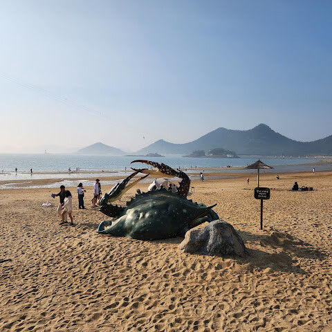 뷰는 좋았습니다. 모래사장이 좁고 아직 편의시설이 부족하네요..