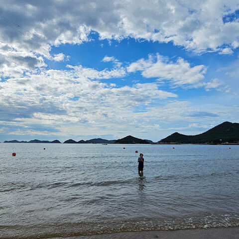 처음 방문했는데 경치도 좋고 사람들이 적어서 애들과 수영하면서 놀기좋네요. 안전요원도 계속 보이고 샤워장이나 화장실도 나쁘지 않아서 담에도 방문할예정입니다. 사진만보면 외국같은느낌이네요.