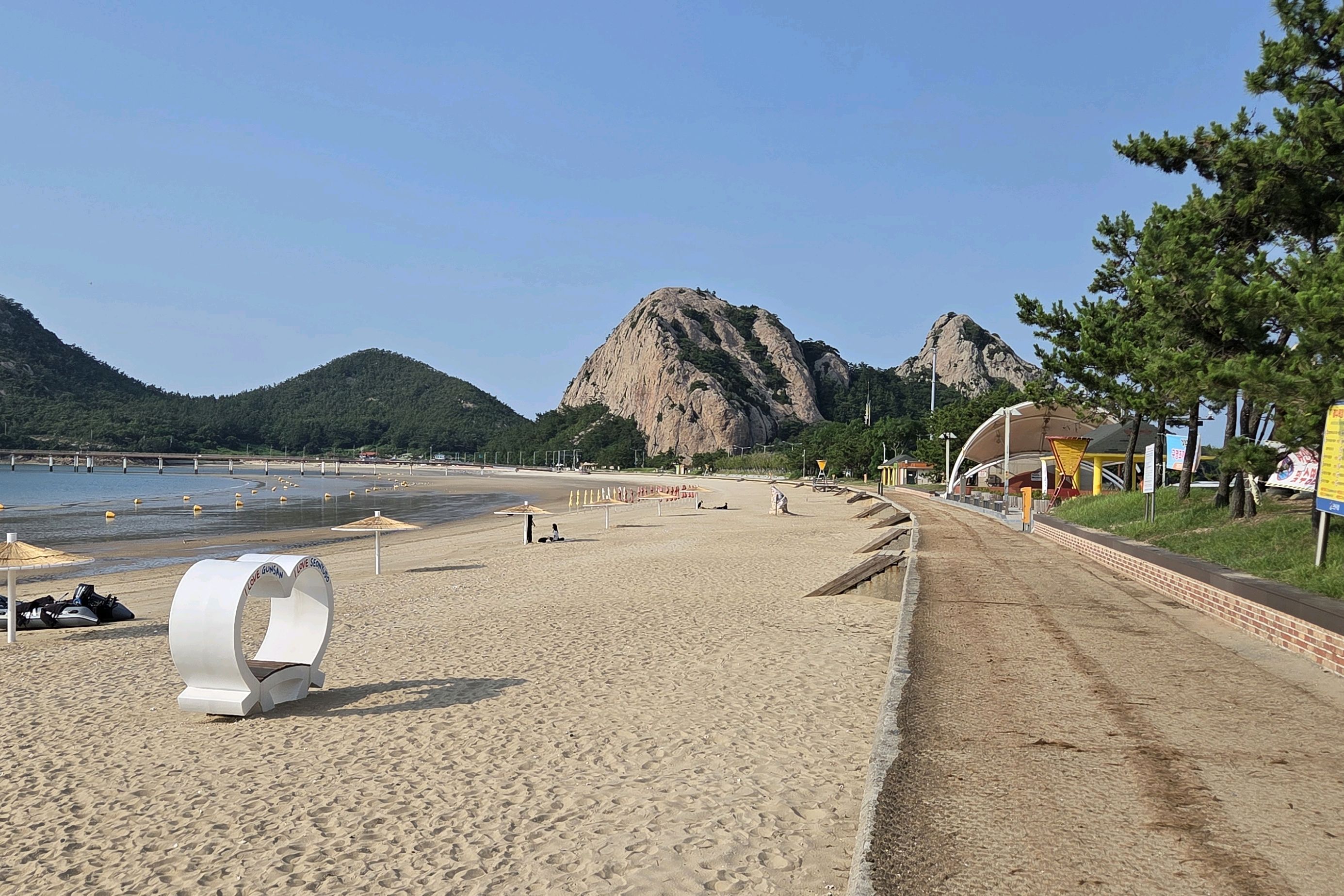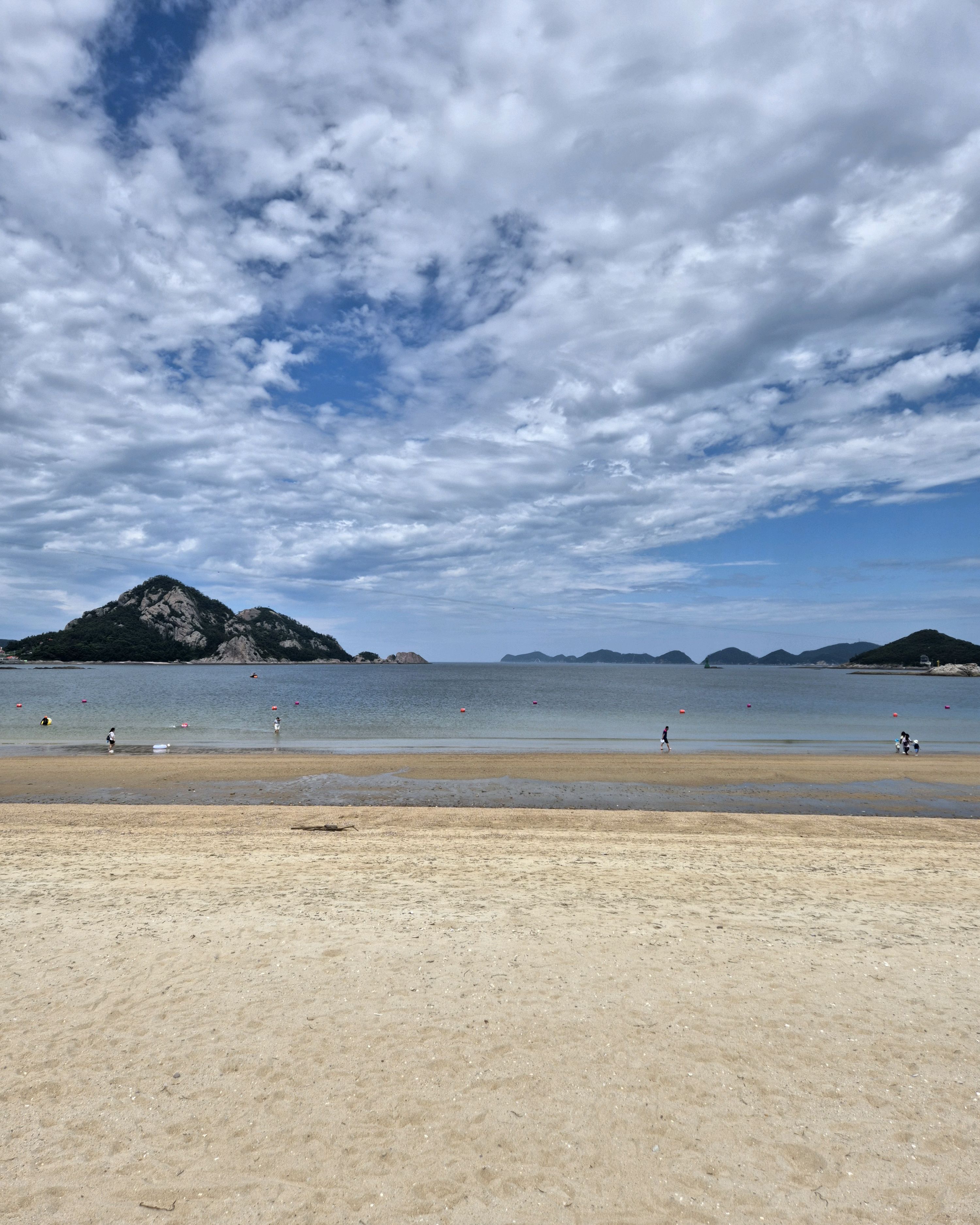 올여름 해수욕장 개장은 했는데 본격적인 휴가철이 아닌 평일 낮시간대라 아직은 한산했어요 물이 깊지않고 해변이 길어 물놀이하기 좋고 파라솔과 샤워실을 무료로 이용할수있는것이 큰 장점이네요!