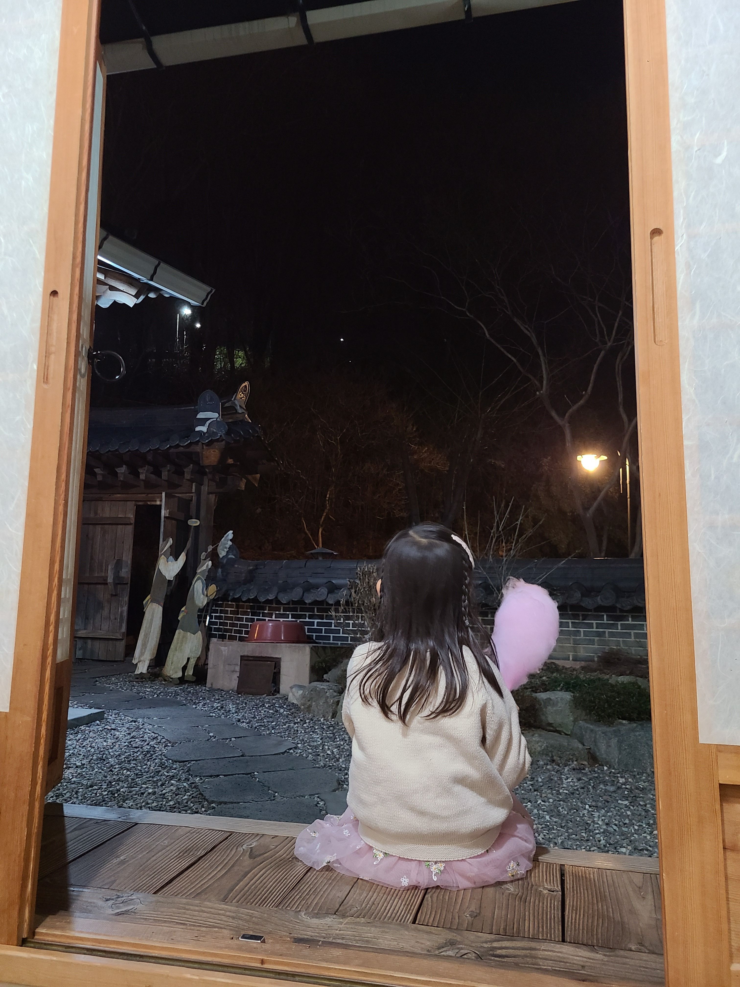 주말 요금도 착해요. 1층 머물다방 이용했는데, 독채 숙소마냥 편하게 지내다 왔어요. 아이가 있다가 머물다 강력추천합니다. 숙소도 작은거실과 방 분리된 구조라 5명이 머물기에도 충분했답니다. 춥다며 미리 방 데워놓으신것도 좋았고, 퇴실시 공용주차장 주차권도 챙겨주시더라구요. 감동감동- 딸래미들이 마당에서 시끄럽게 해서 죄송한 마음으로, 감사한 마음으로 1박 잘 보내다왔습니다. 다음에 한옥마을 가게 된다면 재방문 예정이예요^^