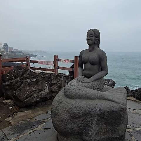 공항에서 멀지 않은 곳에, 떠나기 전에 비행기, 파도, 인어상, 용두암을 보았습니다.