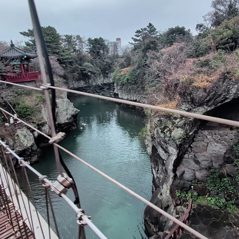 다리 위에 서면 용두암과 바다의 웅장한 풍경이 유난히 넓게 펼쳐집니다. 가을에 방문하면 용연 주변의 푸른 바닷물에 비친 단풍의 아름다운 풍경도 감상할 수 있습니다.
