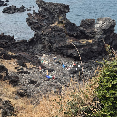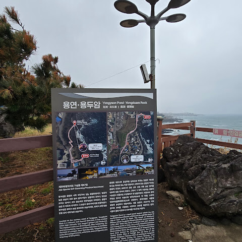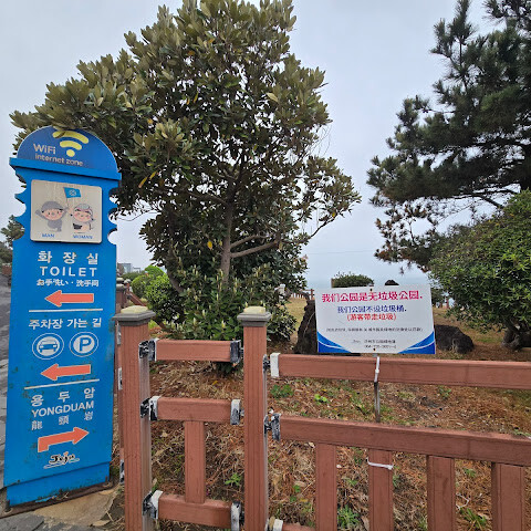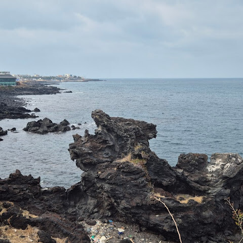 제주시는 관광지 주변의 쓰레기와 해변으로 밀려온 플라스틱 쓰레기를 치우는 데 더 많은 노력을 기울여야 합니다. 근처에 공영 주차장이 있습니다. 바위는 세월이 흐르면서 침식되어 크기가 작아졌다고 들었지만, 바위에 새겨진 용의 형상은 여전히 볼 수 있습니다.