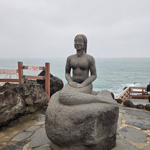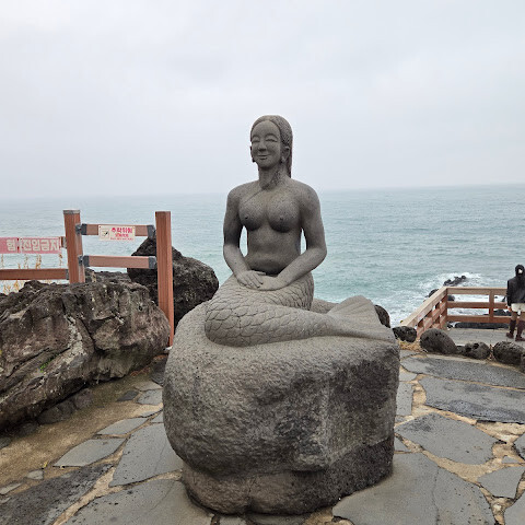 2025년 8월에 단체 투어로 방문했습니다. 그날은 왠지 모르게 조명이 약간 역광이어서 용머리 모양만 대충 담을 수 있었습니다. 바위 해안 풍경을 감상하며 인어 사진을 찍었습니다. 근처에는 관광객들이 이 지역을 찾는 데 도움이 되는 표지판도 있었습니다. 작은 가게도 있어서 구경할 수 있었습니다. 귀여운 제주 전통 물건들이 많았고, 잠시 햇볕을 피할 수 있게 해 준 가게 주인에게 감사의 표시로 작은 기념품을 샀습니다.