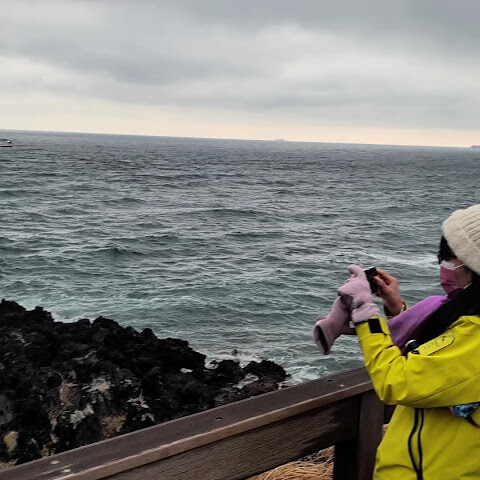 바닷바람이 얼굴을 스치고 지나갔고, 저 멀리 비행기 여러 대가 낮게 날았습니다. 제주공항에서 차로 8분 거리에 있는 이곳은 도착 당일에 쉽게 방문할 수 있는 명소입니다.