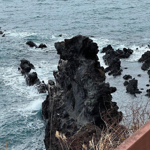 바람이 너무 세게 불고 차가워서 걸어 내려가기 힘들었지만, 그래도 정말 마음이 편안해졌고 바위는 용머리처럼 생겼어요. 비행기가 지나가는 모습도 볼 수 있고요. 파도가 해안에 부딪히는 소리도 정말 좋아요. "용두암은 숨 막힐 듯 아름다운 자연의 경이로움이에요! 용머리처럼 생긴 이 상징적인 바위는 제주도에서 꼭 봐야 할 곳이에요. 바다와 주변 경관이 어우러진 아름다운 풍경은 사진 찍기에 완벽한 장소예요.
