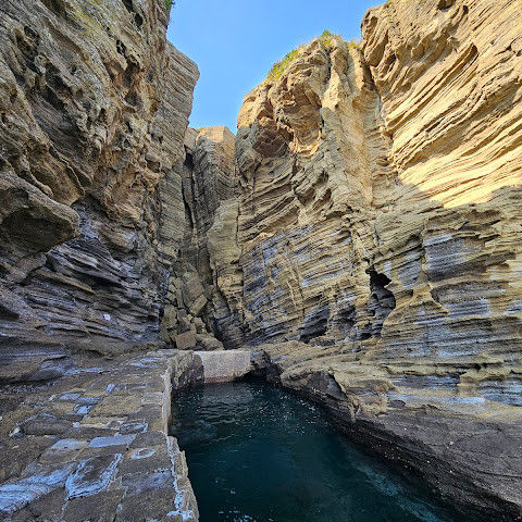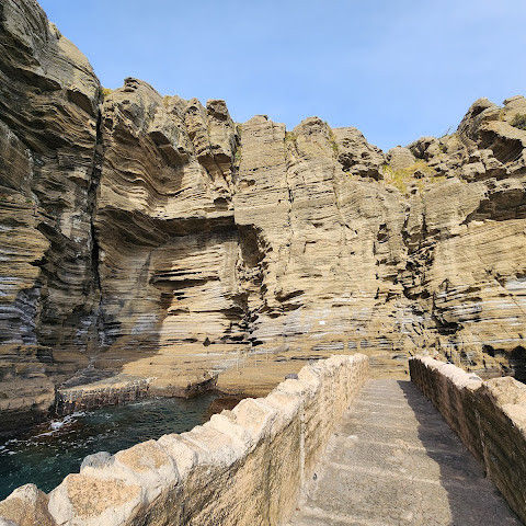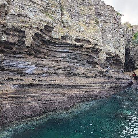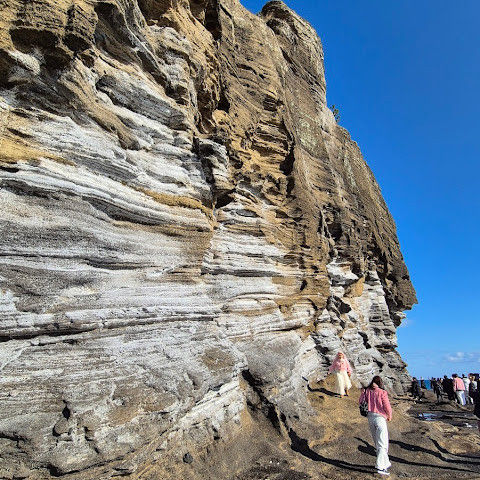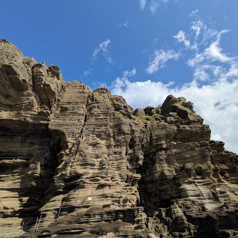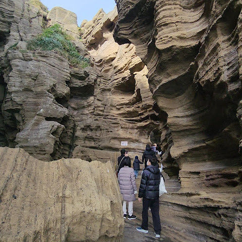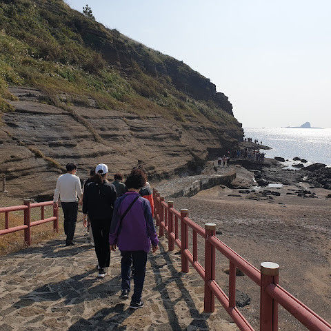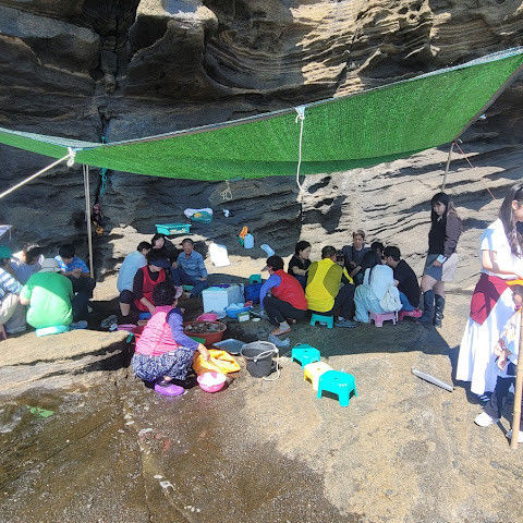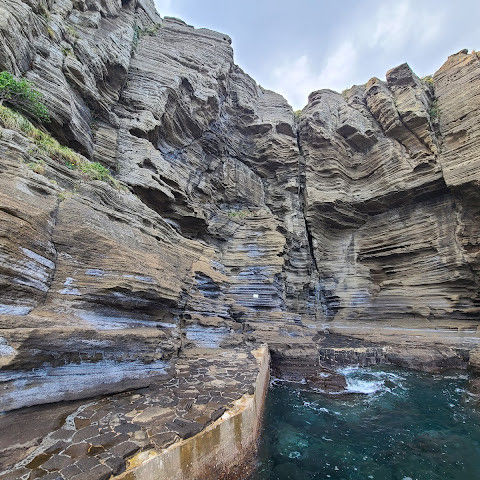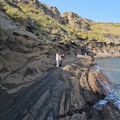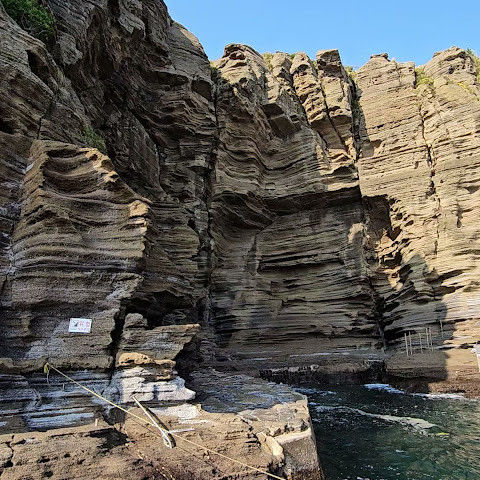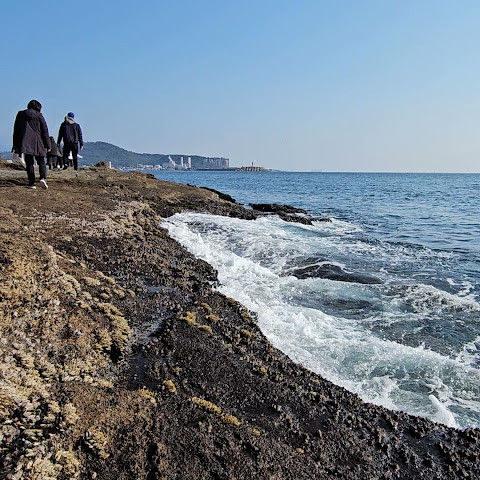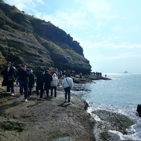 썰물 때 해안 절벽을 따라 걸으며 멋진 야외 경험을 만끽하세요. 멋진 해안 풍경, 일부 지역의 수정처럼 맑고 푸른 바닷물, 흥미로운 층상 암석 지형, 그리고 작은 물고기들이 있는 바위 웅덩이까지, 다양한 볼거리를 제공합니다. 전복과 다른 조개류를 즉석에서 손질하여 제공하는 생사시미를 판매하는 상인들도 있습니다.