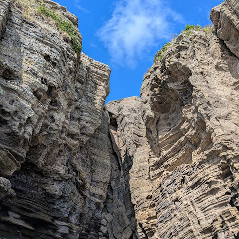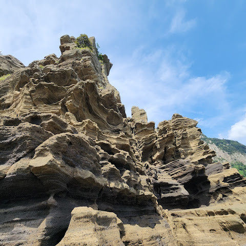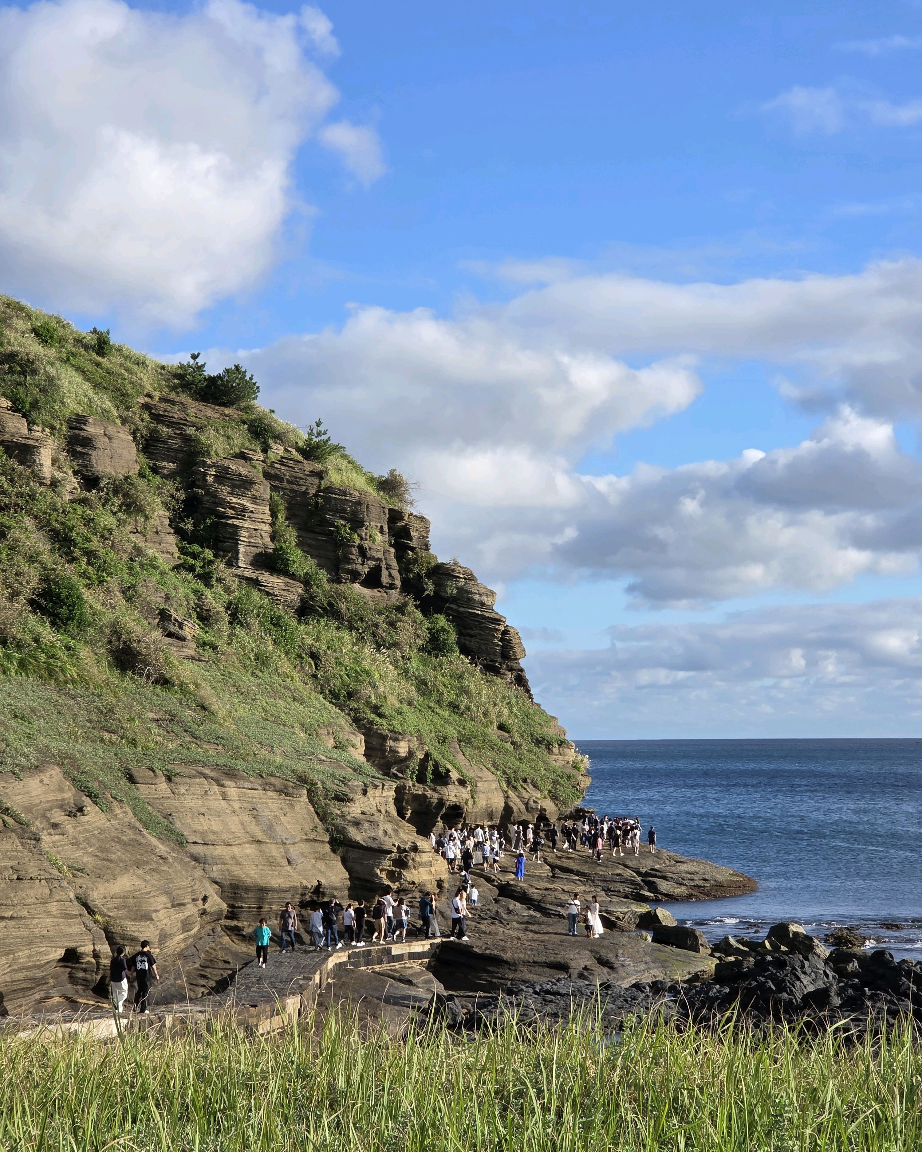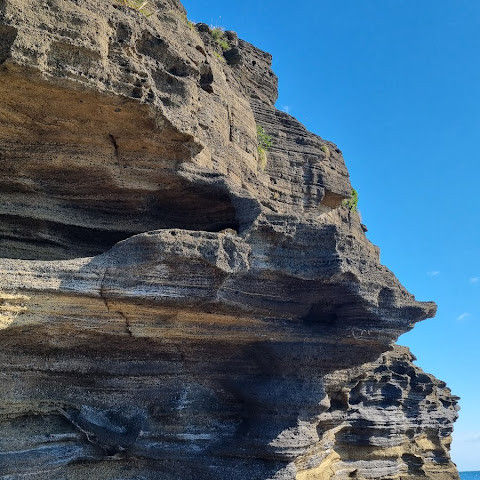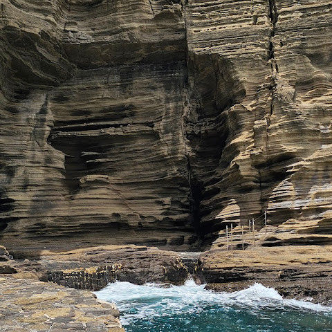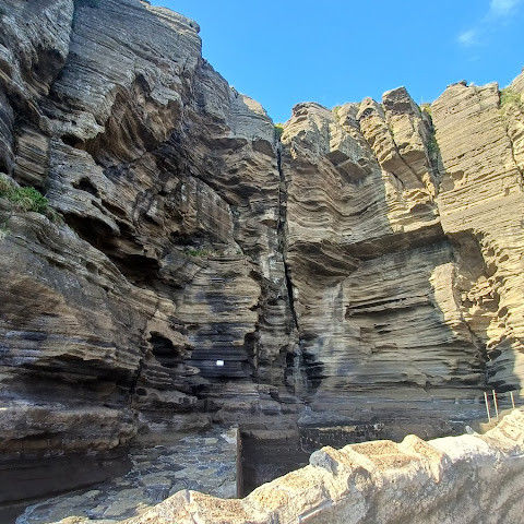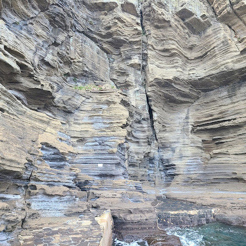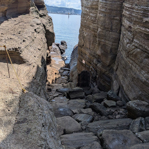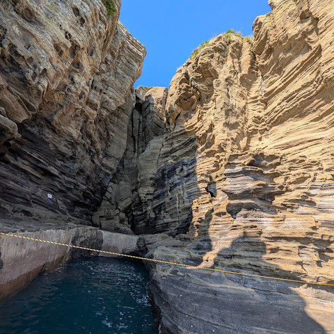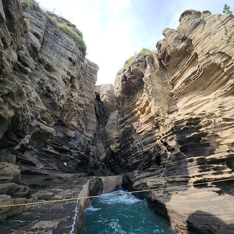 썰물 때 해안 절벽을 따라 걸으며 멋진 야외 경험을 만끽하세요. 멋진 해안 풍경, 일부 지역의 수정처럼 맑고 푸른 바닷물, 흥미로운 층상 암석 지형, 그리고 작은 물고기들이 있는 바위 웅덩이까지, 다양한 볼거리를 제공합니다. 전복과 다른 조개류를 즉석에서 손질하여 제공하는 생사시미를 판매하는 상인들도 있습니다.