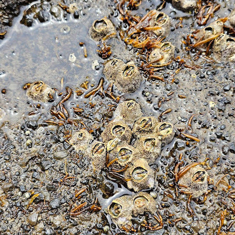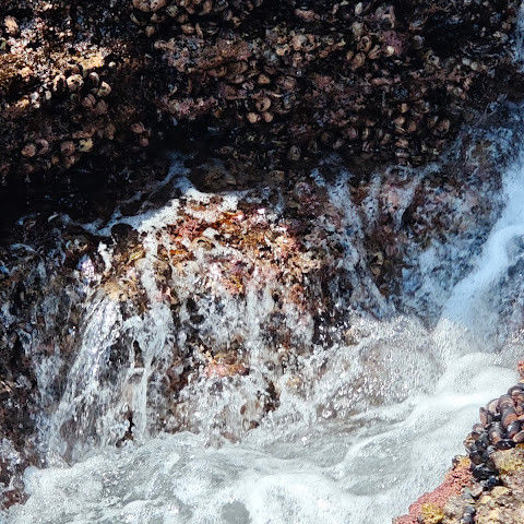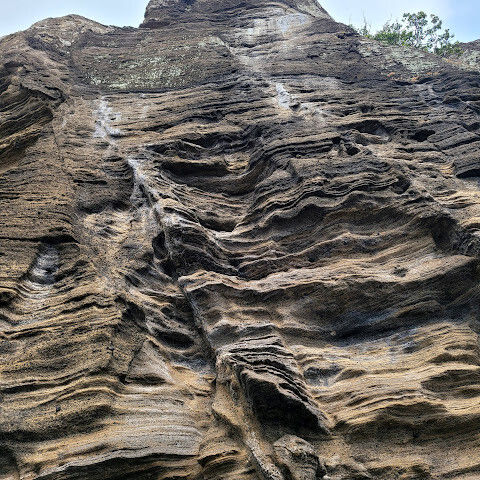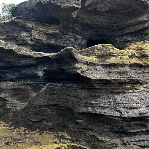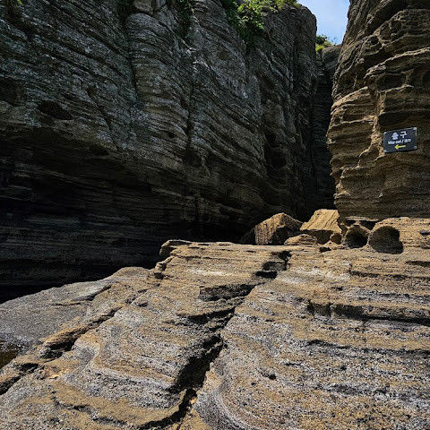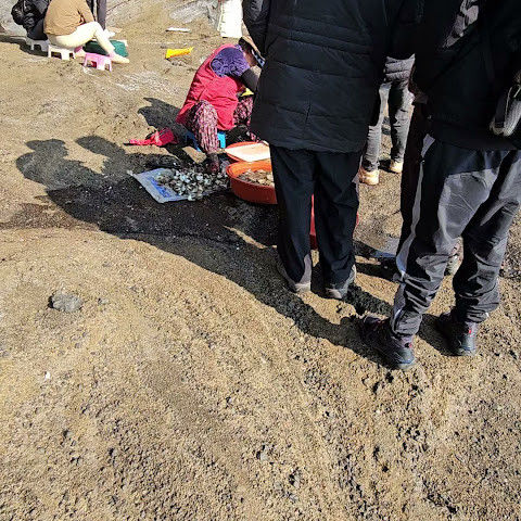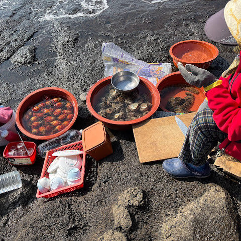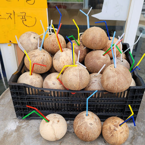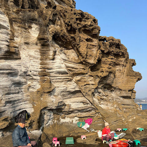 용머리해안은 정말 특별하고 황홀한 기암괴석들이 있습니다. 두 번이나 방문했는데, 두 번 다 그 기암괴석에 매료되었습니다. 이번에는 문 닫는 시간 15분 전에 입장했습니다. 밀물 때문에 개장 시간이 짧았고, 며칠 전부터 비가 내렸습니다. 그래서 방문할 수 있어서 정말 다행이었습니다. 창조주의 경이로움. 신선한 조개류를 파는 아주머니들을 봤는데, 제 위가 그렇게 튼튼할지는 의문입니다.