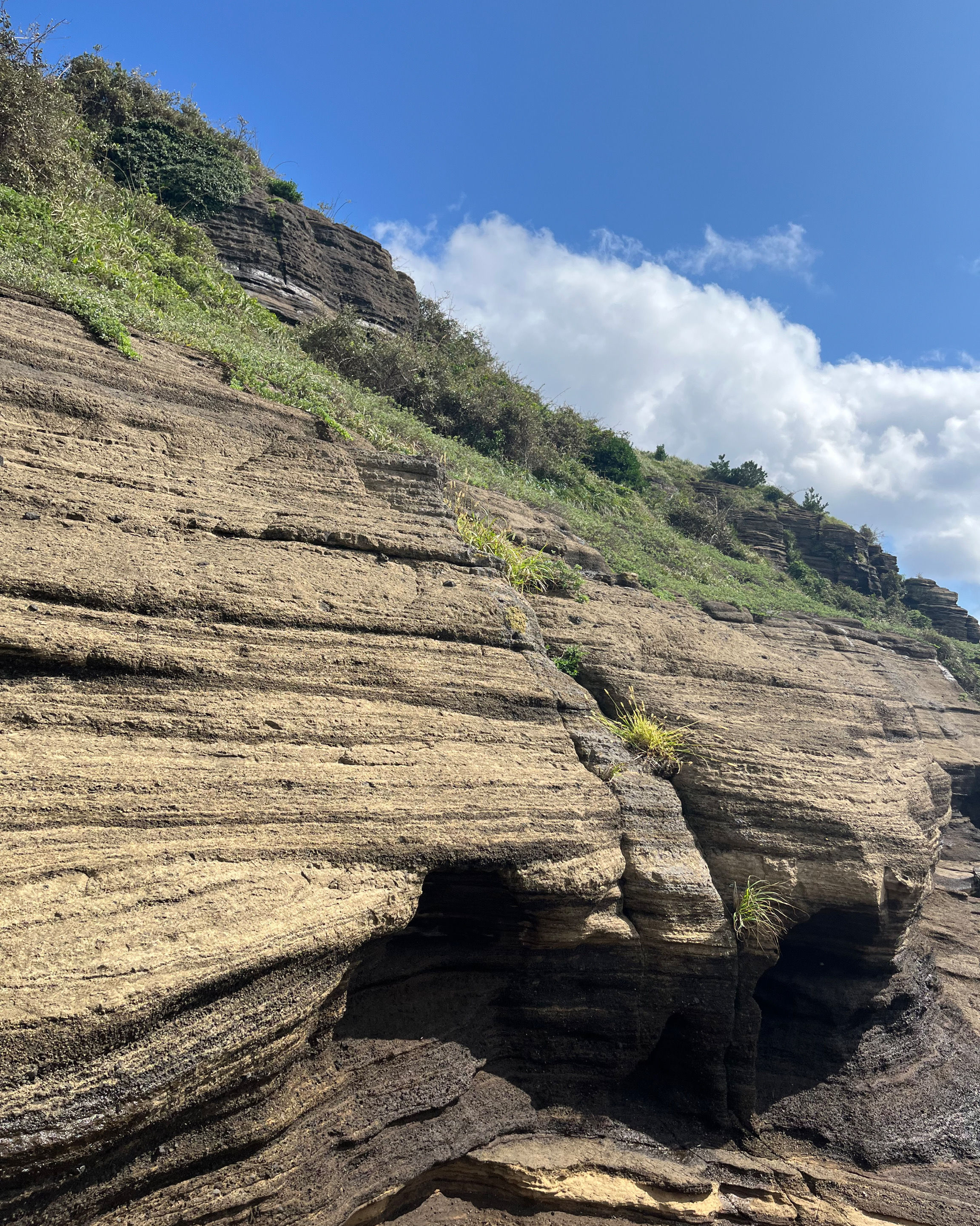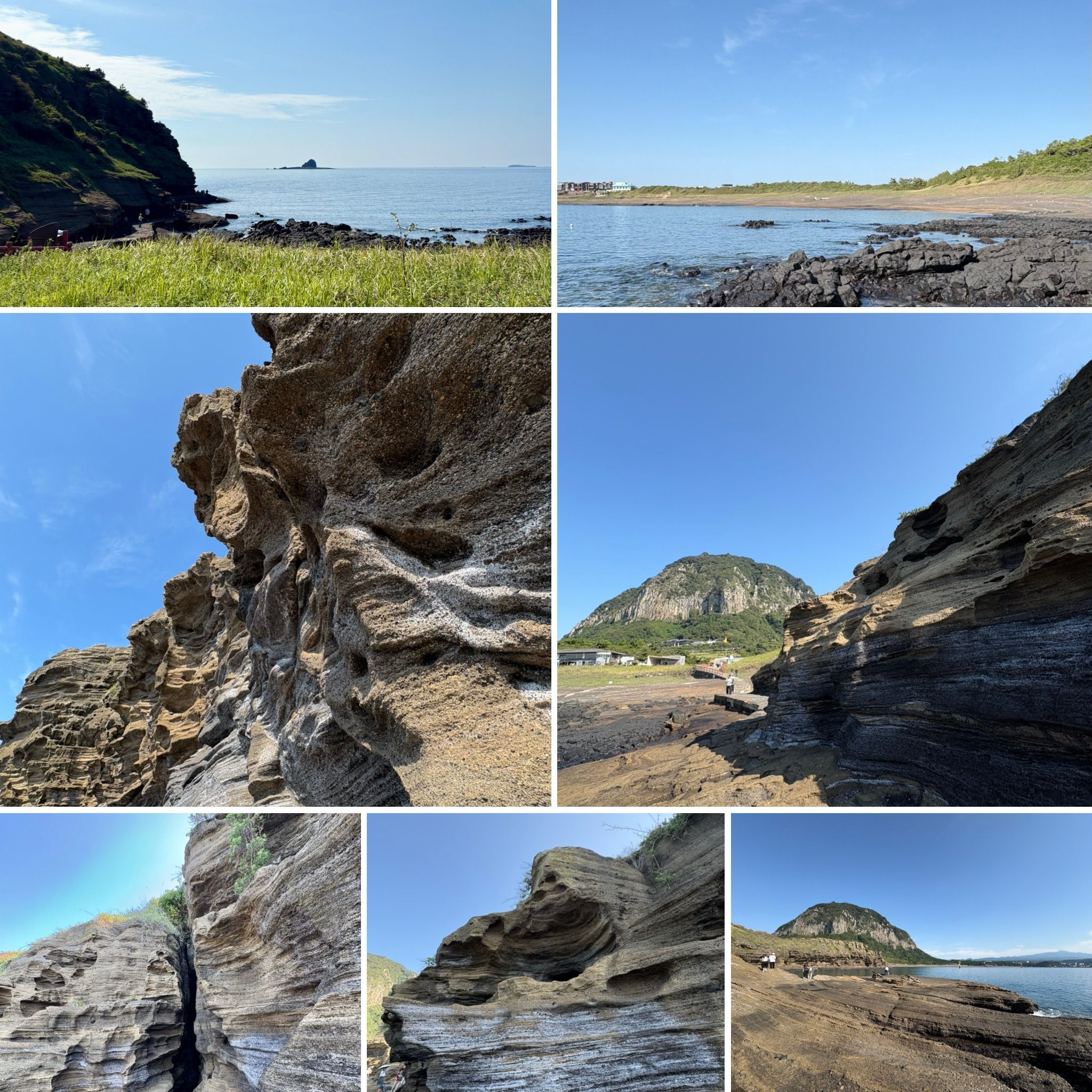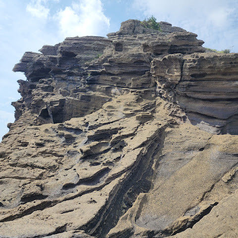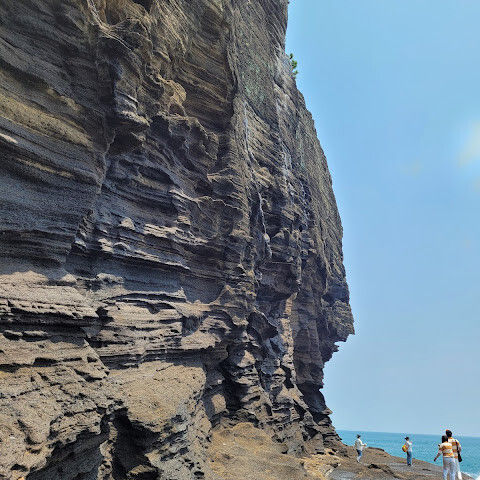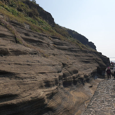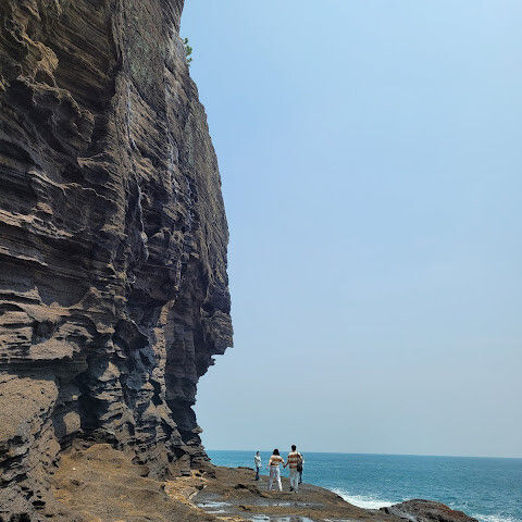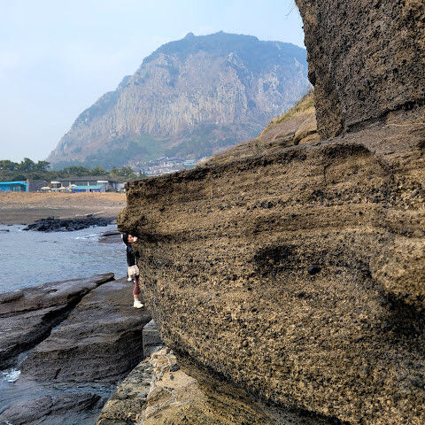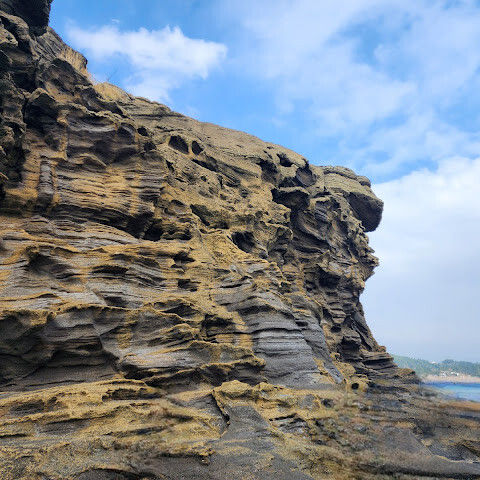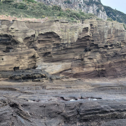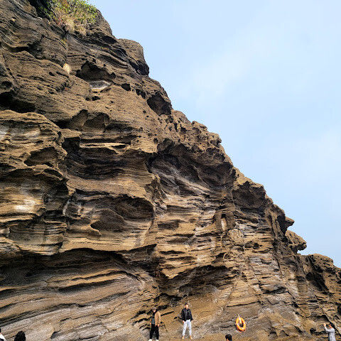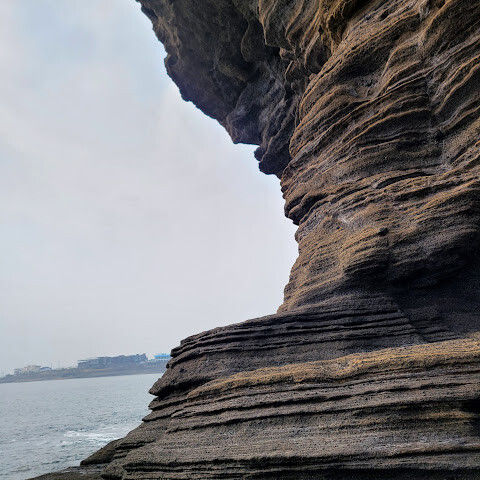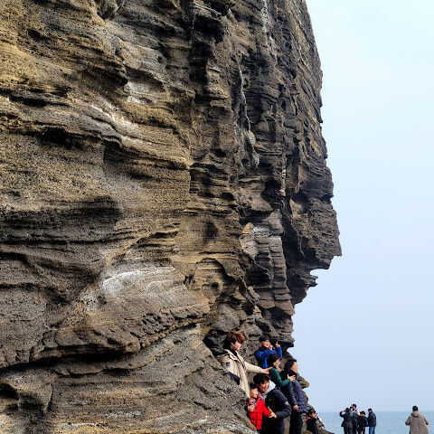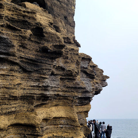 제주도 여행하면서 가기 어렵다는 용머리해안을 성공했어요. 전화해보니 2시 반까지 출입 가능하다고 해서 부랴부랴 출발했습니다. 가는 도중에 먹구름이 몰려 오는 것 같아 걱정했는데 다행히 들어갈 수 있었어요. 사람은 꽤 있는 편이었고 하나도 닮은 곳이 없는 절경이 펼쳐져 있었습니다. 나중에는 날씨가 더울 정도였ㅇㅓ요. 날씨랑 바다가 허락해야 갈 수 있는 매력적인 곳!