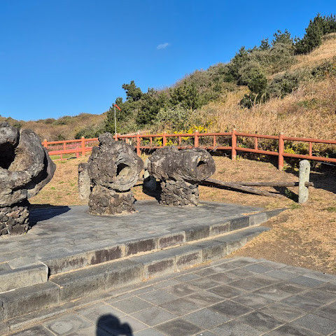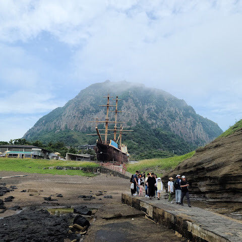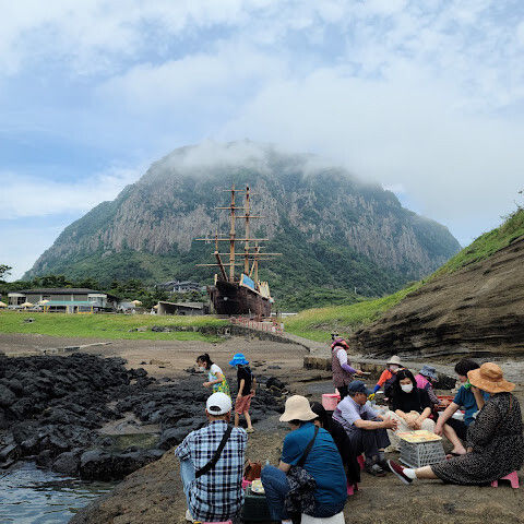 제주 관덕정 사무소에서 공항행 265번 버스 탑승 → 하차 후 600번 또는 601번 버스로 환승하여 엑천리역에서 하차 → 202번 버스로 환승하여 산방산역(버스에서 50m 거리)에서 하차. 무료 화장실이 있습니다(먼저 화장실에 다녀온 후 산 아래로 내려가세요. 산 아래 해변까지 걸어가는 데 20분이 걸립니다). 산 아래로 내려가 해변 공중 화장실까지 걸어가세요. 입장료는 성인 2,000원입니다. 경치가 아름답고, 바위들이 제주도 십경 중 하나인 "모자이크"처럼 기묘합니다. 북쪽에서 세 대의 버스를 타고 2시간 30분이 걸리지만, 그만한 가치가 있습니다. 저녁 6시에 202번 버스를 타고 북쪽에 있는 "서문시장"으로 바로 가세요. 3시간 소요, 1,150원으로 매우 저렴하고 가성비가 좋습니다.