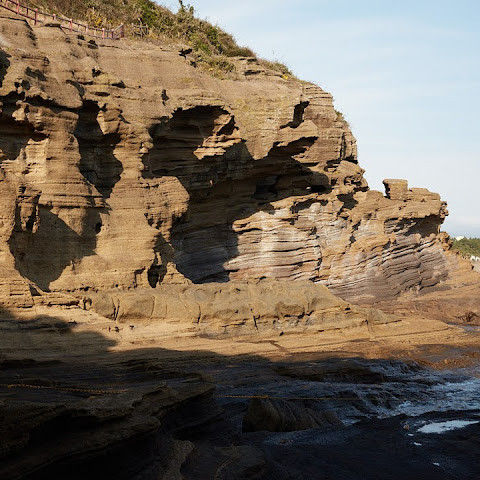 용머리가 바다로 뛰어드는 듯한 모습 때문에 '예롱해안'이라는 이름이 붙었습니다. 해저에 있던 세 개의 화산 분화구가 폭발하면서 다량의 화산암이 분출되어 형성된 해안 지형입니다. 수천만 년에 걸친 퇴적과 침식으로 사암층이 형성되었고, 해안 절벽에는 함몰된 동굴과 침식의 흔적이 나타나 독특한 곡선과 형태를 보여줍니다. 바다와 거의 연결된 산책로를 따라 걸으며 장엄한 용두해안을 가까이에서 바라보고, 수많은 기암 절벽을 감상해 보세요. 그 장관은 그랜드 캐니언에 버금갈 정도로 감동적이며, 제주만의 자랑입니다.